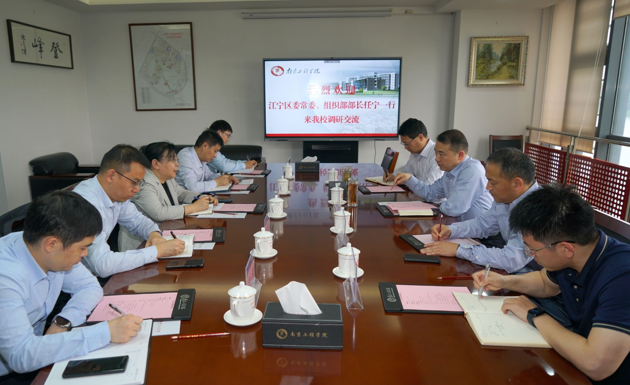 4月16日下午,江宁区委常委、组织部部长任宁一行来校调研交流。党委书记孙爱武,党委常委、组织部部长、统战部部长聂邦军及相关职能部门负责人热情接待了来宾。