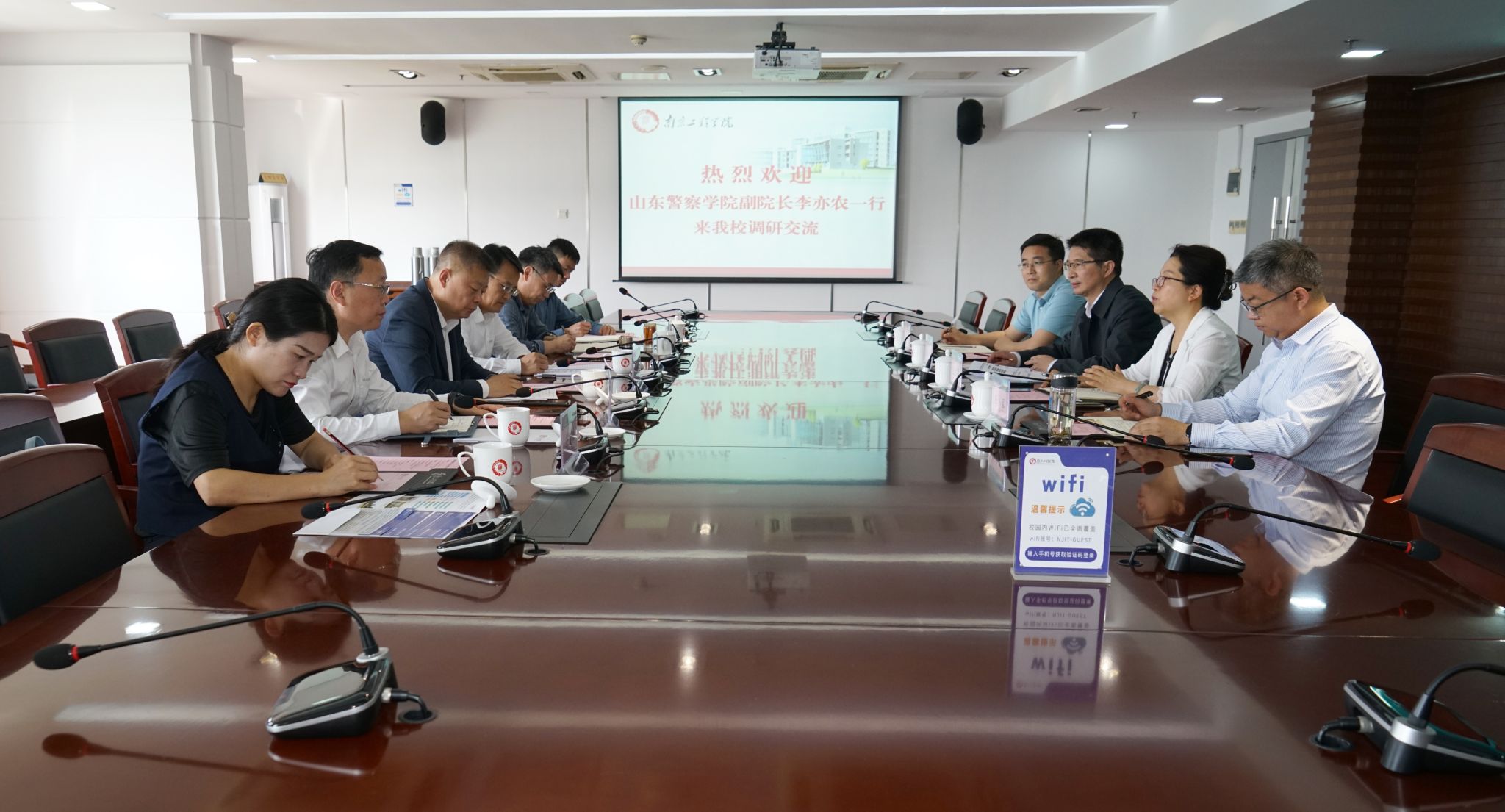 4月26日上午,山东警察学院党委委员、副校长李亦农一行来校走访调研,太阳集团党委常委、副校长朱松青在至勤楼·行政北楼303会议室热情接待了来宾并座谈。