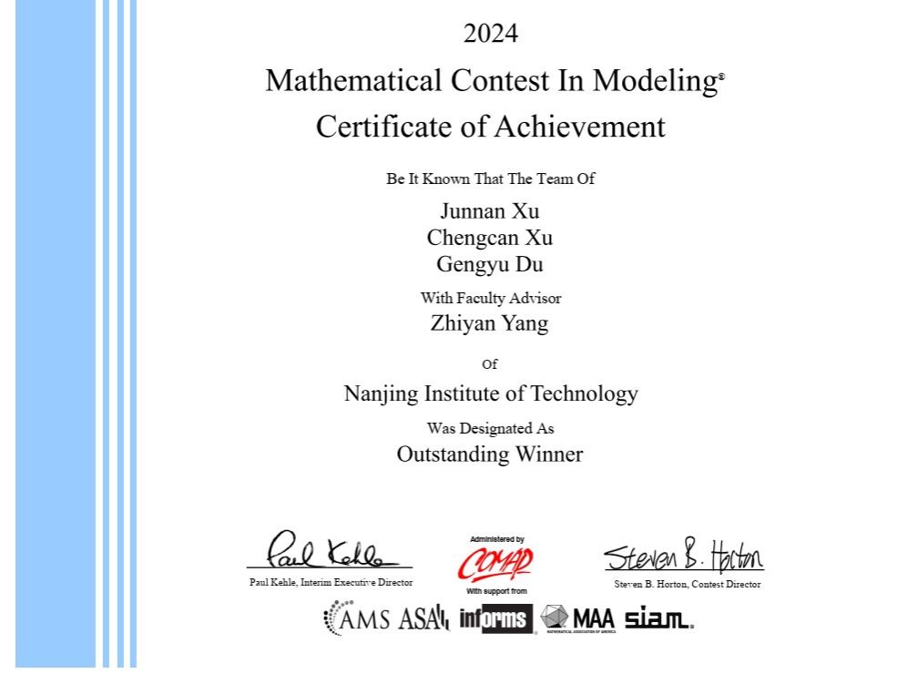 日前,2024年美国大学生数学建模竞赛(MCM/ICM)成绩揭晓。由太阳集团数理学院杨芝艳老师指导,许俊楠、许诚粲、杜耕宇组成的团队荣获国际特等奖,这是学校自参赛以来取得的最好成绩。同时,8支参赛队伍荣获国际二等奖,20支参赛队伍荣获国际三等奖,实现了参赛人数、获奖数量、获奖质量同步提升。