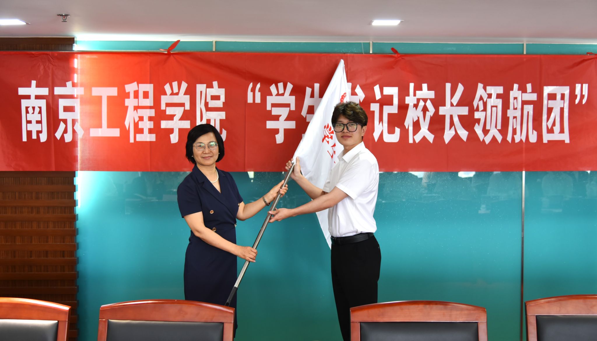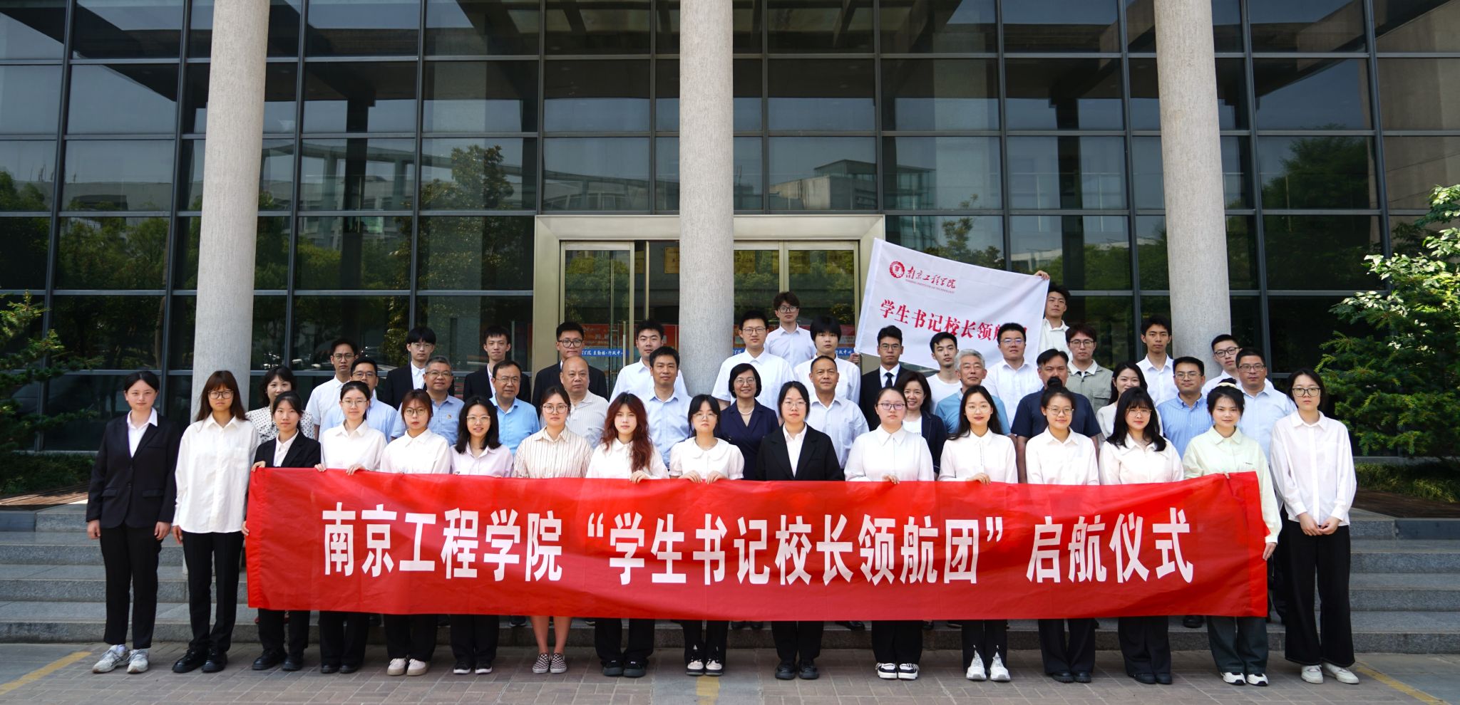 相关职能部门负责人,首批50名“学生·书记校长领航团”学生团员参加仪式。