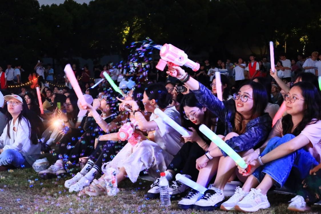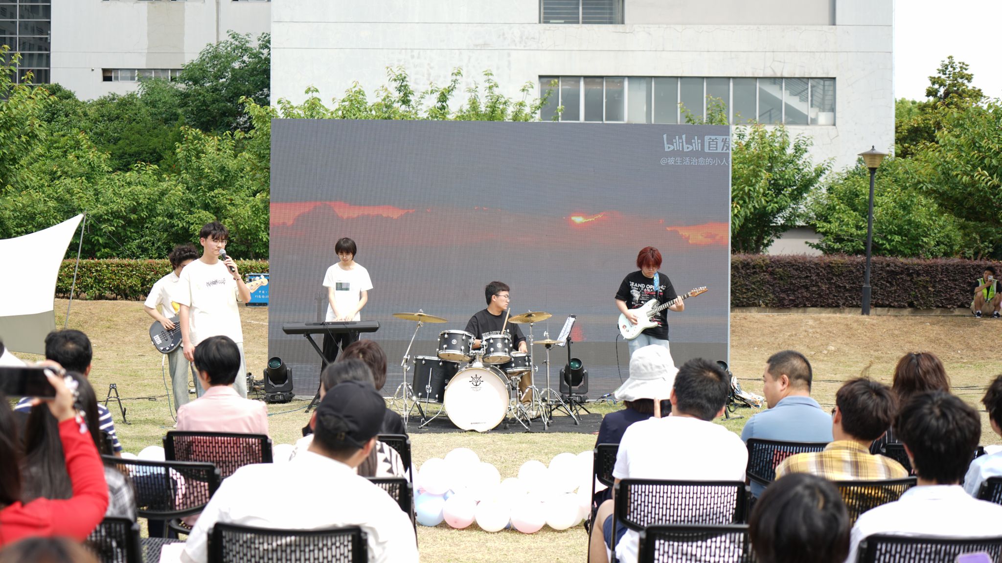 当天傍晚还举行了“音你而来”——草地音乐节。在心海律动、进取交响、和平爱语三个篇章中,不仅有舒缓动人的歌声、悠扬动听的器乐演奏,还有青春洋溢的乐队表演,引发阵阵欢呼。同学们用节奏释放压力,用旋律传递希望,用音符表达情感,展现了当代大学生的青春风采与活力。