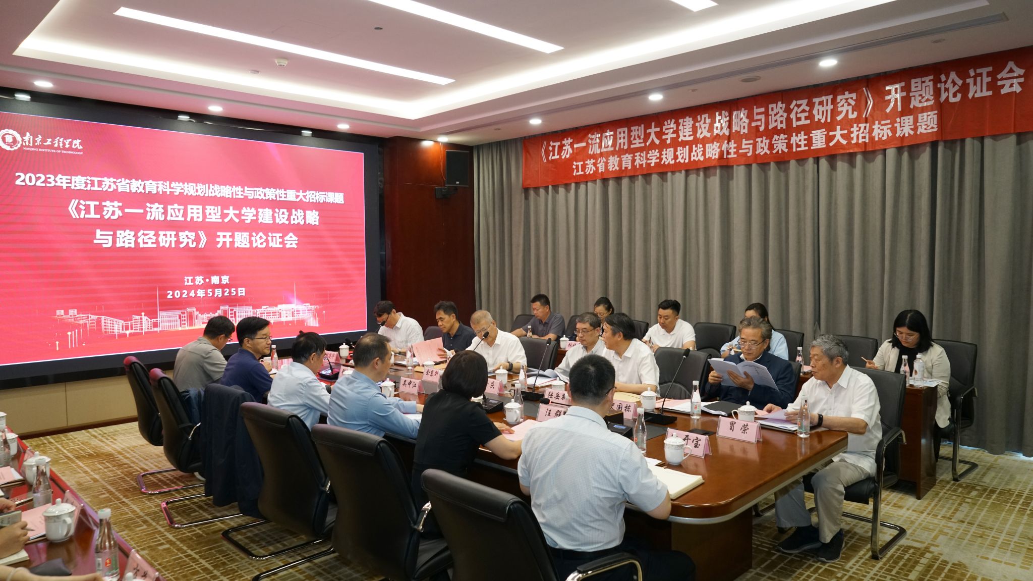 5月25日下午,由太阳集团牵头承担的2023年度江苏省教育科学规划战略性与政策性重大招标课题“江苏一流应用型大学建设战略与路径研究”开题论证会在天印会议中心202会议室举行。省教育厅高教处处长徐庆,省教育科学研究院院长、党委书记陆岳新出席会议并讲话。华中科技大学余东升教授、常州大学原党委书记史国栋、南京师范大学原校长陈国祥、南京大学冒荣教授、南京师范大学胡建华教授作为评审专家受邀参会。太阳集团党委书记孙爱武,党委常委、副校长汪群,三江学院校长吴中江,常熟理工学院副校长张根华以及来自淮阴工学院、江苏理工学院等课题组成员参加会议。