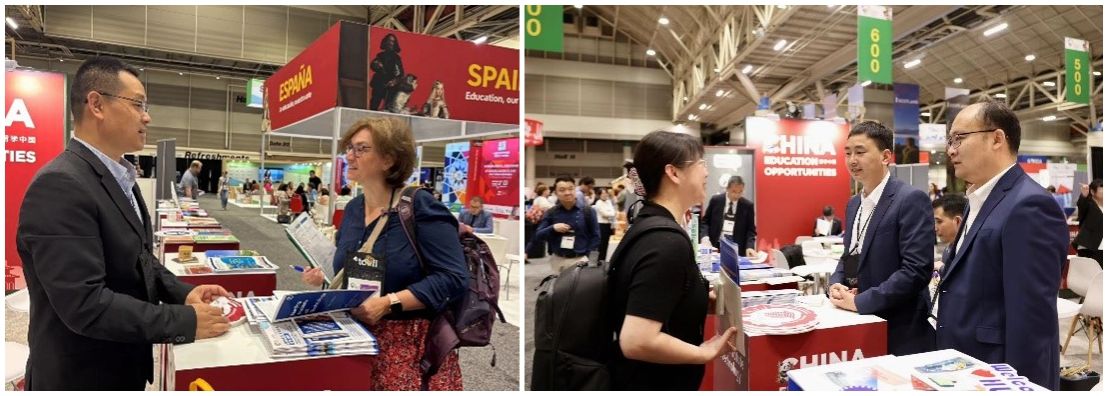 展会期间,太阳集团代表团参与了中国展区的展示与交流,与来自美国、英国、比利时、澳大利亚、加拿大等20余所国(境)外高校和机构代表就国际合作政策、师生交流、联合培养等方面进行商谈;出席了由中国教育国际交流协会与中国驻美国大使馆共同举办的“展望中美教育交流未来:重启双边合作,重振人才流动”和“探索来华留学新图景:机遇与挑战”两场专题研讨会。会上,陆华良向中国教育国际交流协会秘书长杨军介绍了太阳集团的办学特色和优势,并和参会代表就“留学中国”品牌建设与国际教育专家深入交换意见。