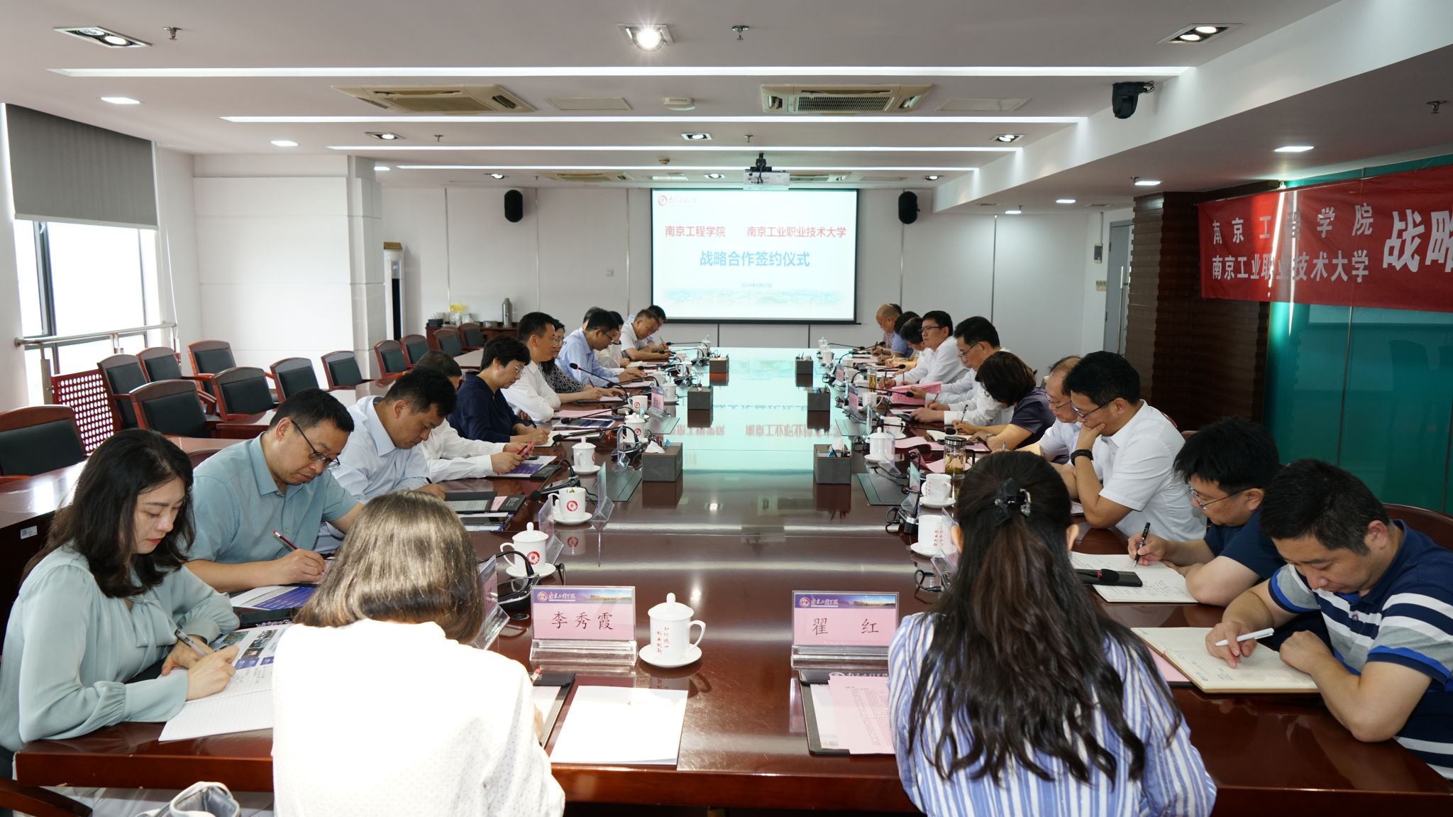 孙爱武对南京工业职业技术大学各位领导来校指导表示欢迎,并表示,两校都拥有悠久的办学历史、行业领先的工科背景,双方渊源久远、情谊深厚,具有良好的合作基础和广阔的合作空间。希望以本次签约为契机,进一步整合优质资源,完善合作机制,在人才共育、项目共担、资源共用、成果共享、产业共培等方面深化合作,共同打造应用型高校合作典范。