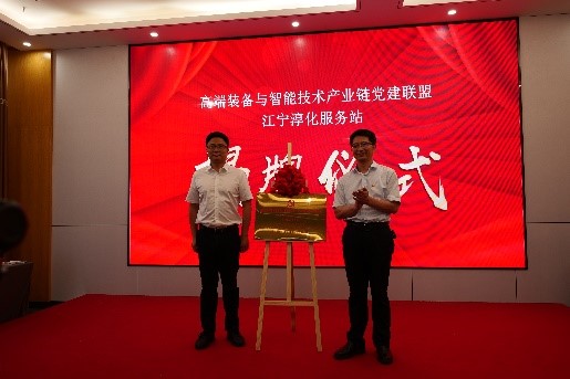 活动现场,朱松青、何华共同为高端装备与智能技术产业链党建联盟·江宁淳化服务站揭牌,并为党员博士“一人一企”服务队授旗。谢清为博士党员服务队成员颁发聘书。