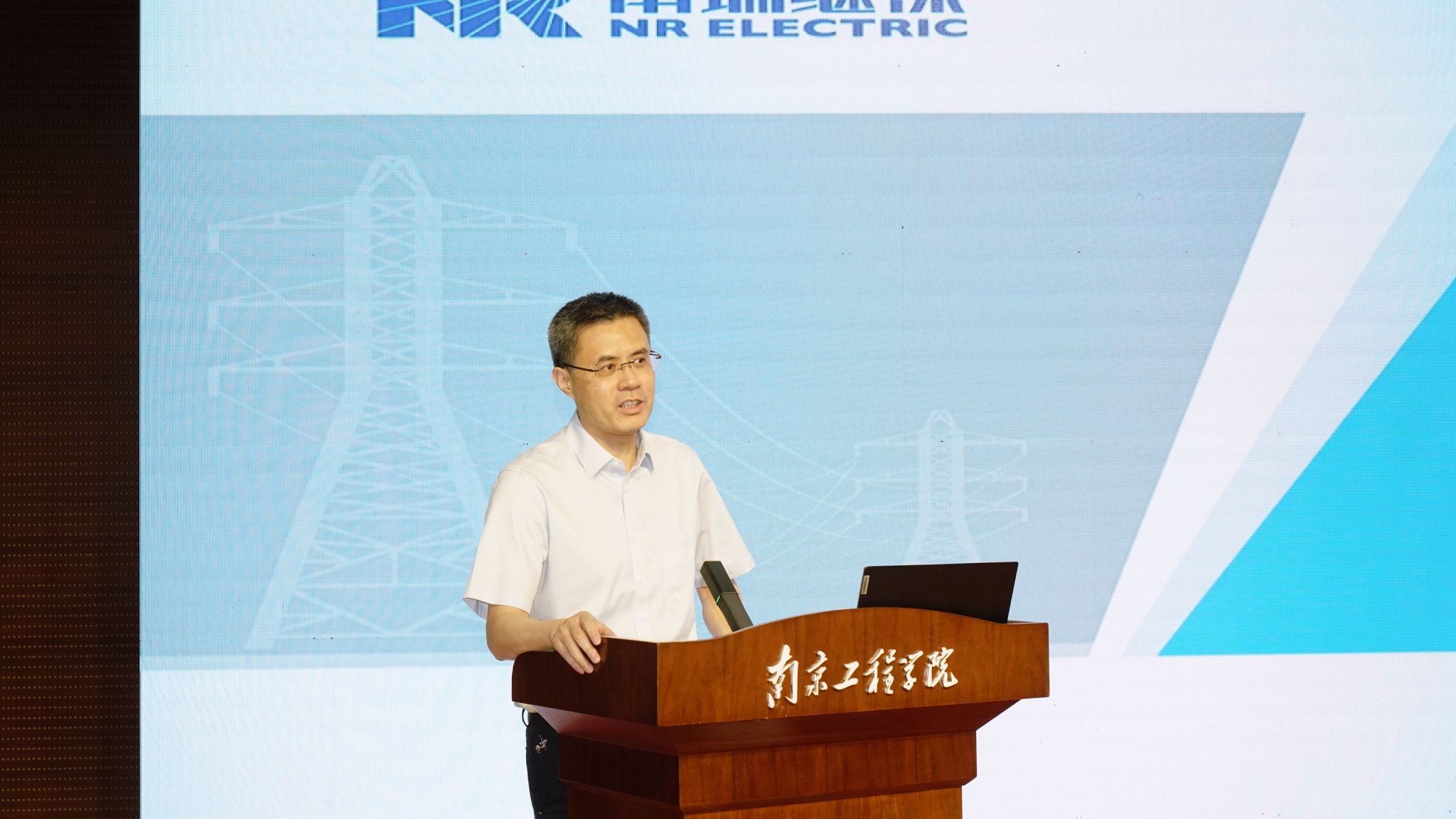 朱晓彤从智能电网产品概况、上下游产业链协同、校企融合培育新时代卓越工程师、未来与展望等四个方面作产教融合推动智能电网产业发展主题演讲。