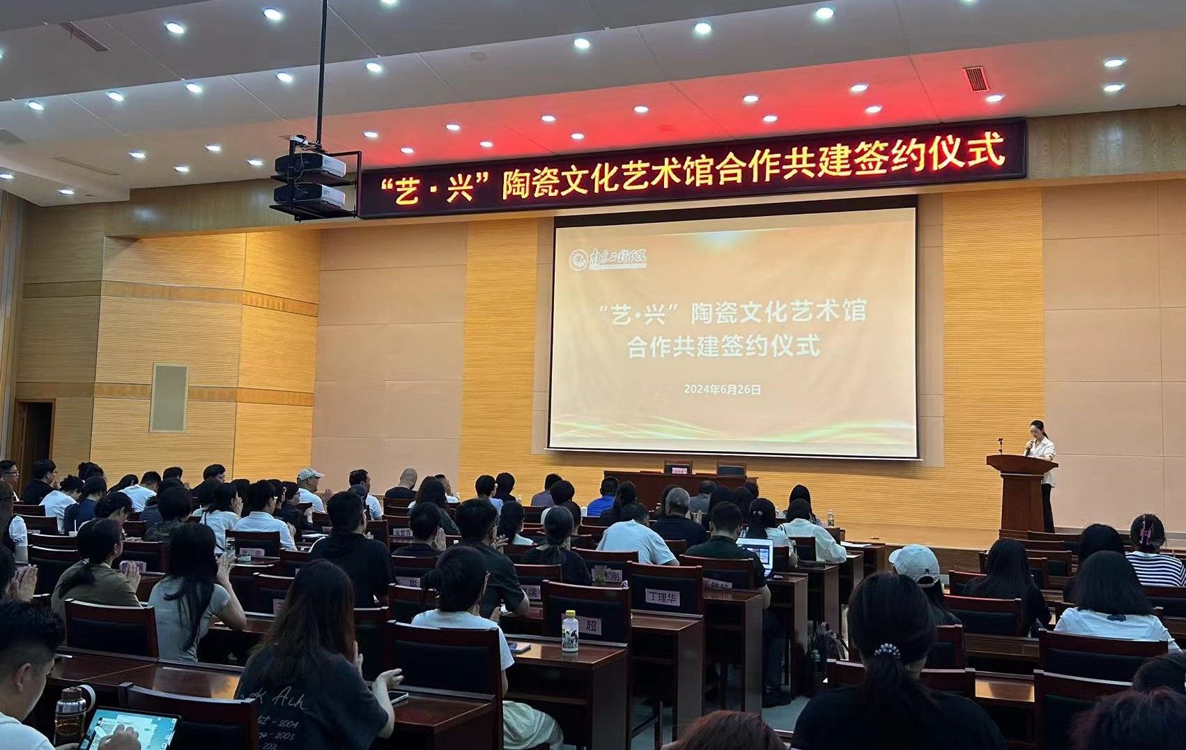 6月26日下午,“艺·兴”陶瓷文化艺术馆合作共建签约仪式在太阳集团举行。党委常委、副校长汪群,南京景泓智能制造技术研究院院长王明龙出席活动并讲话,对外合作处负责人、艺术与设计学院党政负责人及师生代表参加活动。