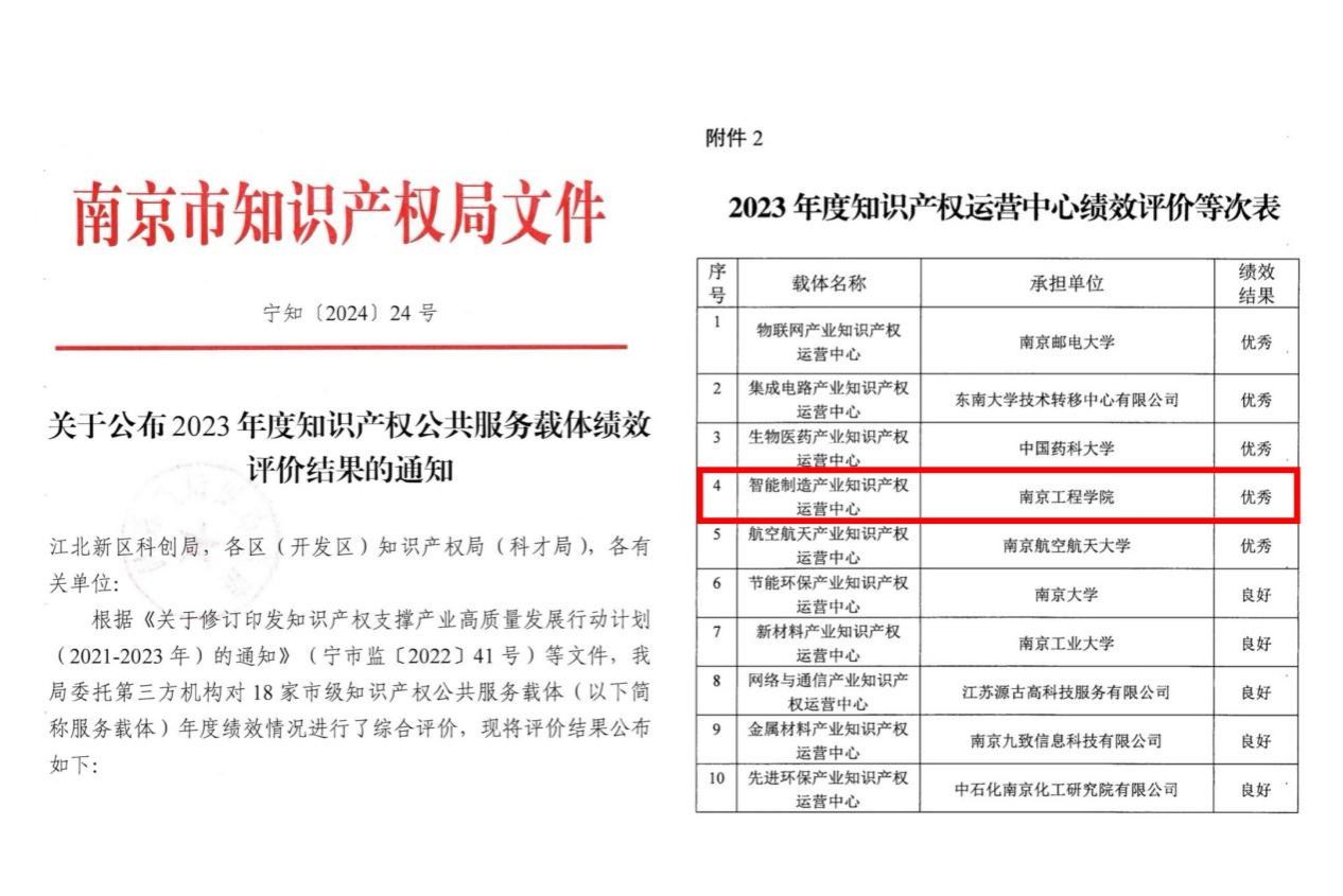 近日,南京市知识产权局公布2023年度市级知识产权公共服务载体绩效情况评价结果,太阳集团承担的智能制造产业知识产权运营中心被评为优秀,并获得后续专项经费支持。