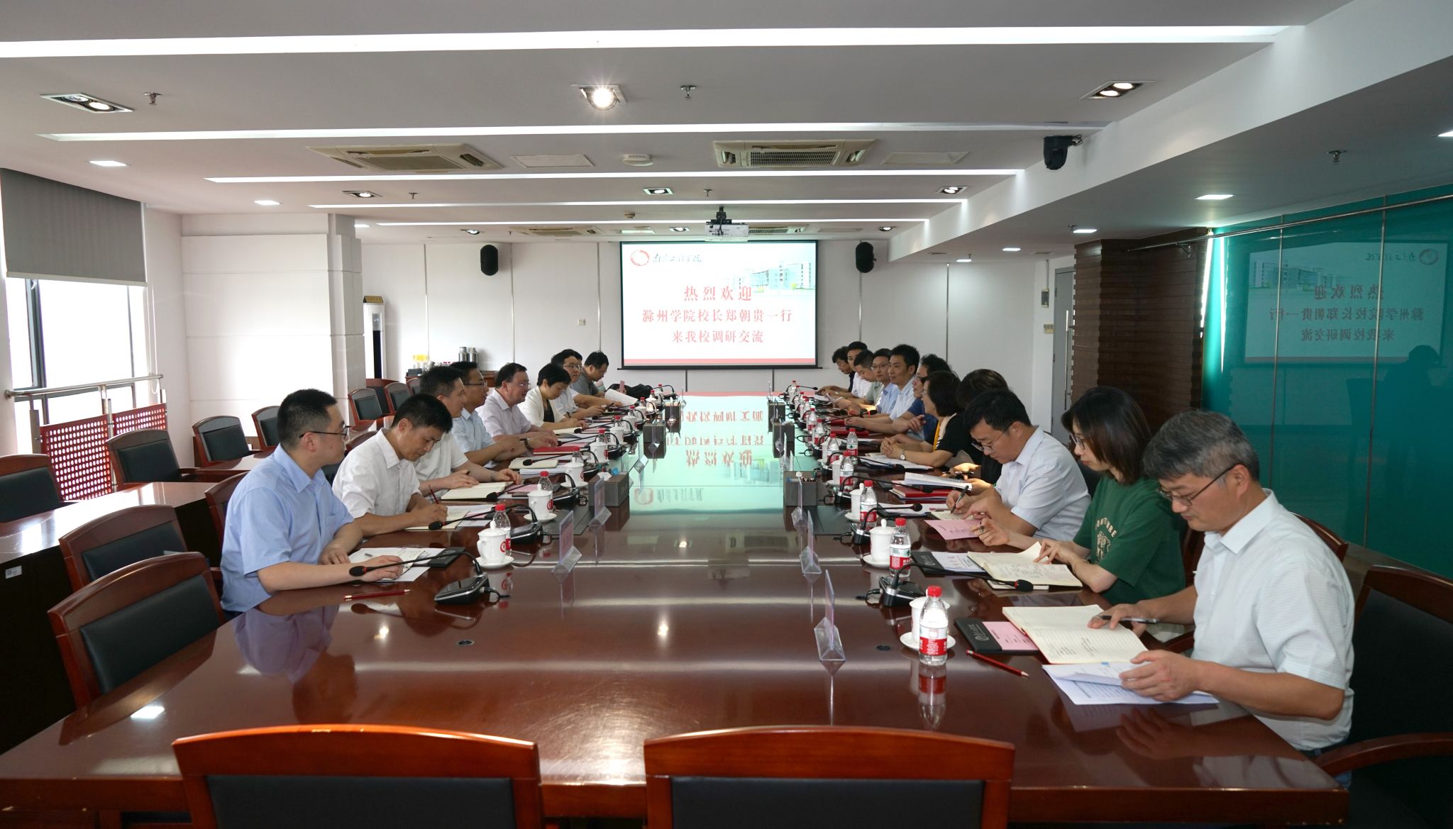 张仰飞对滁州学院来访考察调研表示热烈欢迎。他向与会来宾介绍了学校的办学历史、办学定位、办学目标,重点阐述了学校的优势学科巩固提升、科研创新赋能服务发展、人才培养模式探索与实践等方面的创新工作思路和举措。他表示,作为应用型高校,要始终坚持应用型办学定位不动摇,找准制约学校发展的“短板”,着力破解发展难题,突破改革瓶颈,坚定不移走好应用型办学之路。他希望,双方今后进一步加强合作交流,拓宽合作领域,发挥各自特色优势,携手打造校校合作新典范。