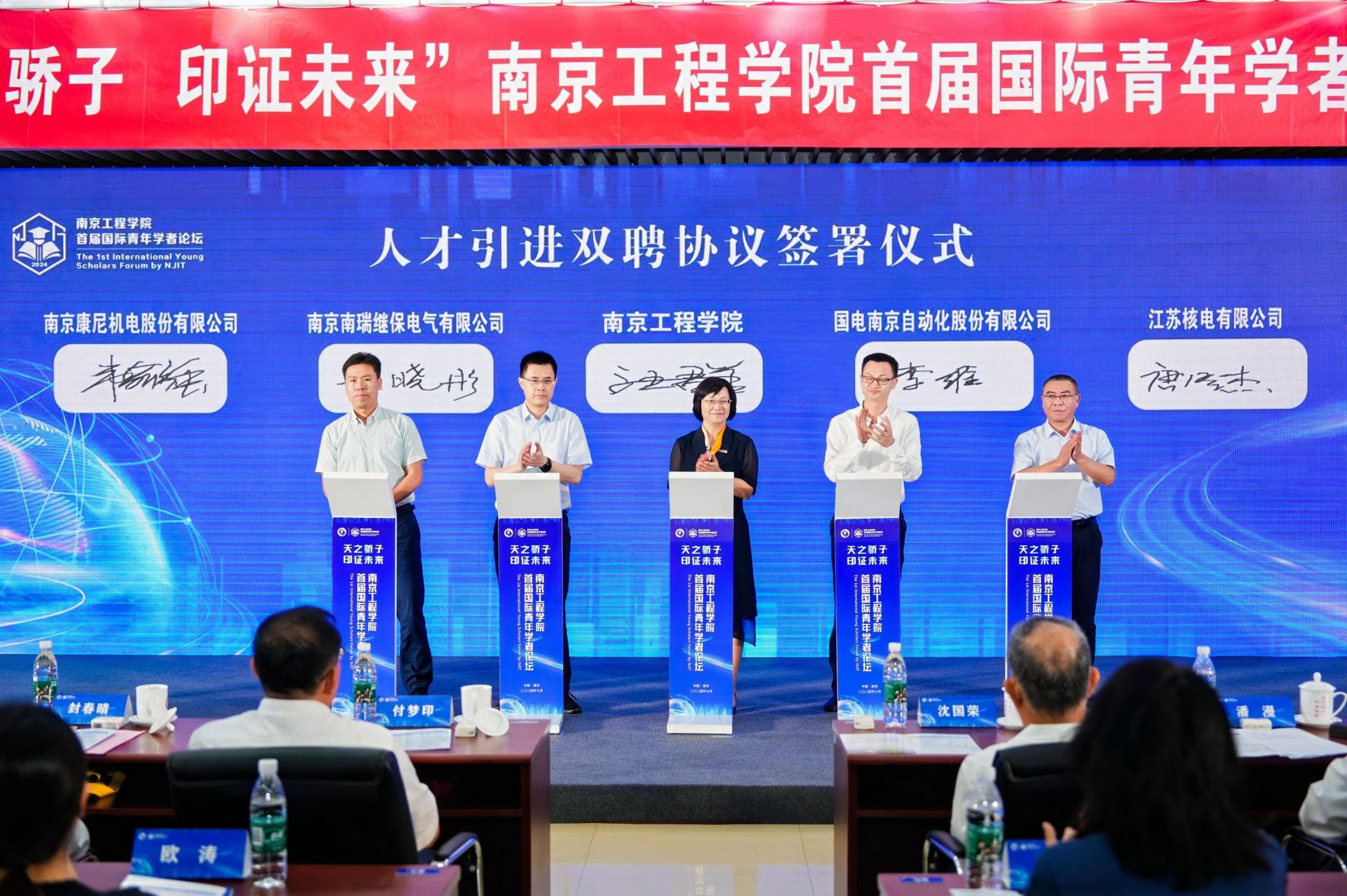 活动现场,江宁区与太阳集团签署人才共引共育共用合作协议。南京南瑞继保电气有限公司、国电南京自动化股份有限公司、南京康尼机电股份有限公司、江苏核电有限公司与太阳集团签署人才引进双聘协议。开幕式上还举行了优秀人才签约仪式。