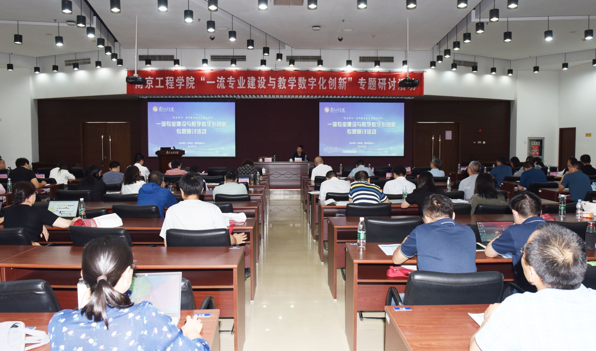 为贯彻落实学校第四次党代会精神,推进一流专业建设工程,推动“学为中心”本科教育教学思想大讨论走深走实,7月9—10日,学校举办“一流专业建设与教学数字化创新”专题研讨活动。活动聚焦高等教育赋能新质生产力发展,围绕应用型本科教育教学改革、教学成果培育、教学数字化、新文科建设、产教融合发展等专题组织专家讲座、开展内部研讨。党委书记孙爱武,党委副书记、校长张仰飞,党委常委、副校长朱松青,副校长包永强等校领导参加活动。各教育教学单位主要负责人、分管教学和实验工作负责人,各专业负责人、专业骨干教师,相关职能部门科级及以上人员参加研讨。