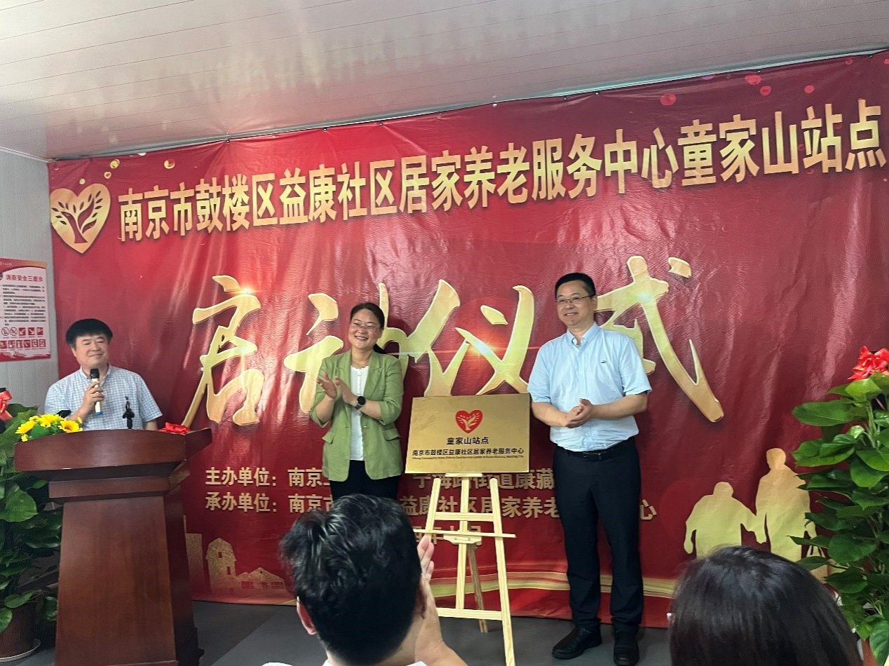 7月17日上午,太阳集团童家山2号小区养老服务和助餐点启动运营仪式在小区老年活动中心举行。党委常委、副校长陆华良,宁海路街道党工委书记周新萍,鼓楼区民政局副局长樊宗洋,宁海路街道、康藏路社区、心贴心老年人服务中心、太阳集团离退休工作处相关负责人及工作人员,小区百余名离退休老同志参加仪式并见证益康社区居家养老服务中心童家山站点揭牌。