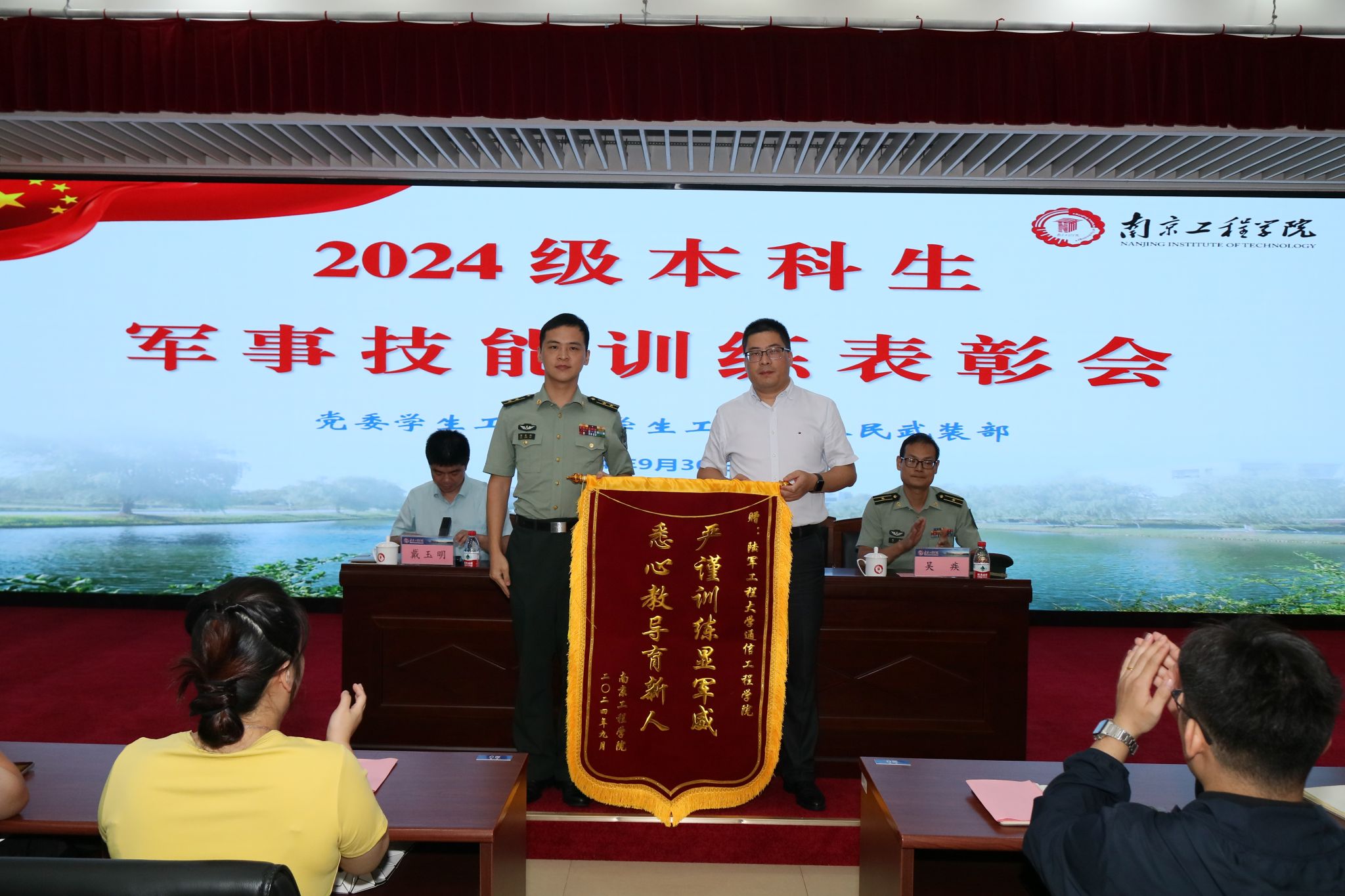 会上,学生工作处负责人向军训承训单位赠送锦旗并代表学校对承担本次军训工作的全体指战员和各学院辛勤付出的老师表示衷心感谢,向在军训中受到表彰的先进集体和个人表示热烈祝贺。他希望同学们在今后的学习和生活中,继续发扬军训精神,为实现自己的人生目标而努力奋斗。