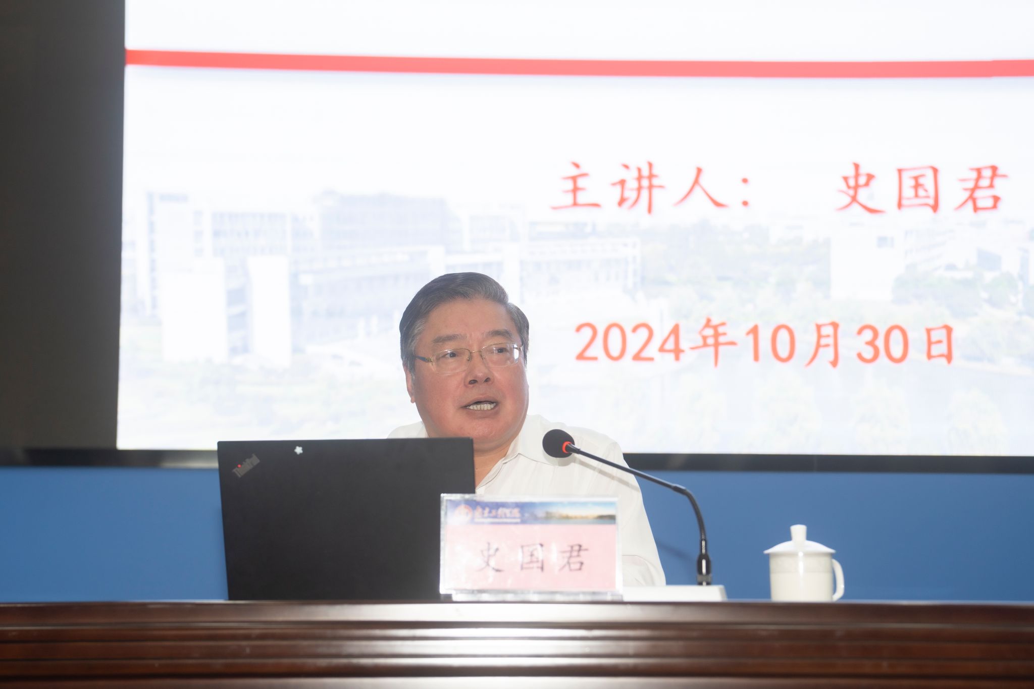 10月30日,省十四届人大常委、法制委副主任委员史国君回校作学术报告,报告以《江苏省低空经济发展思考》为题,围绕低空经济的内涵建设、江苏低空经济的发展现状展开了多维度、深层次的探讨与交流。党委书记孙爱武,商学院、管理工程学院、交通工程学院相关负责人以及师生代表共计200余人参加活动,报告由党委常委、宣传部部长陈建华主持。