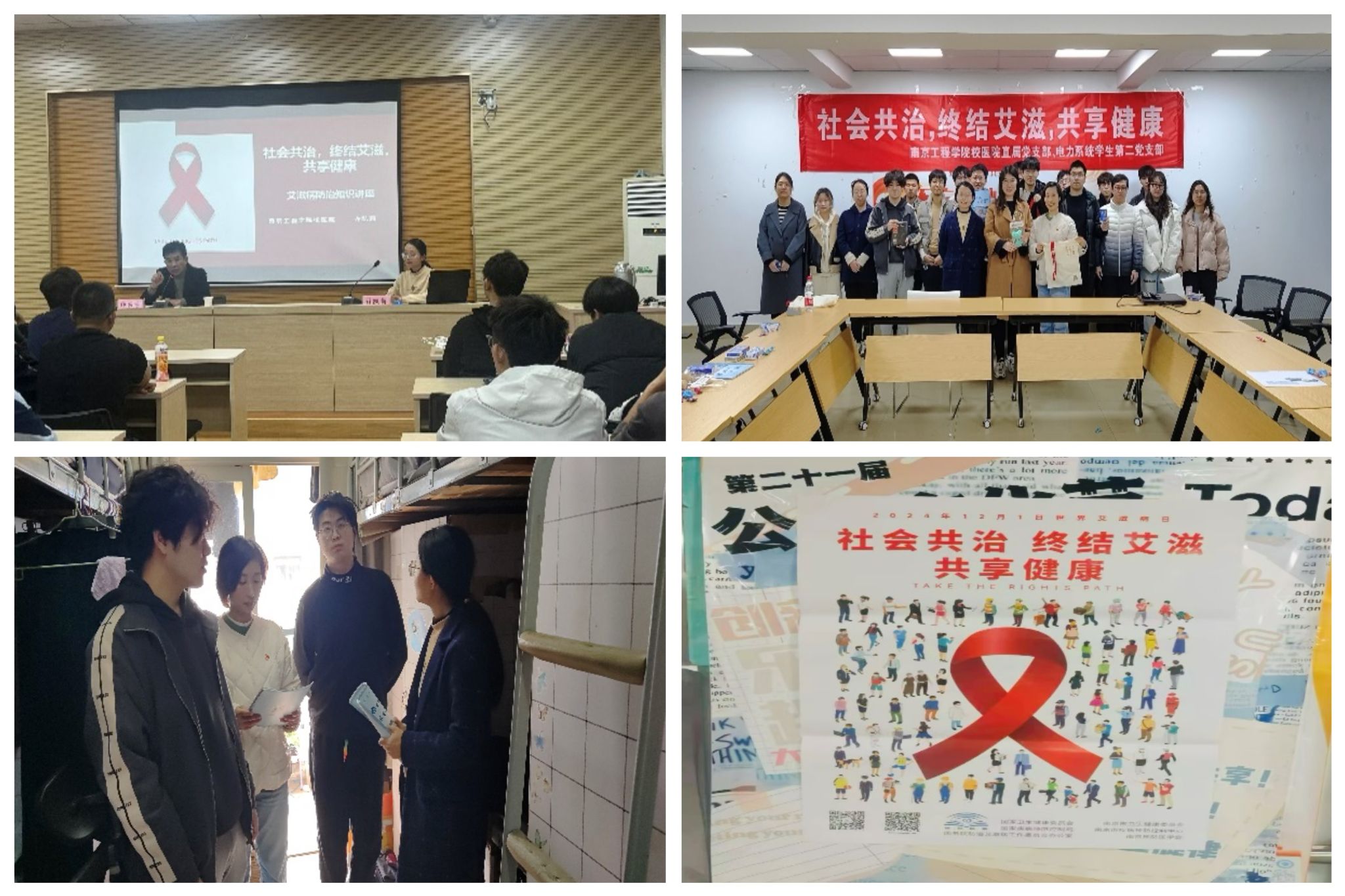 校医院先后走进机械工程学院、电力工程学院、沈国荣学院以及学生宿舍,开展艾滋科普讲座、艾滋知识宣教座谈会等活动,许凯莉、朱启慧等老师结合实际案例,讲解了艾滋病的流行现状、传播途径以及预防检测方法,让同学们对艾滋病有了更加直观和全面的了解,树立起自己是健康第一责任人的理念。除了线下的宣传活动,校医院还充分利用电子屏滚动播放防艾宣传片、张贴宣传海报等形式普及艾滋病防治知识,扩大活动影响力。