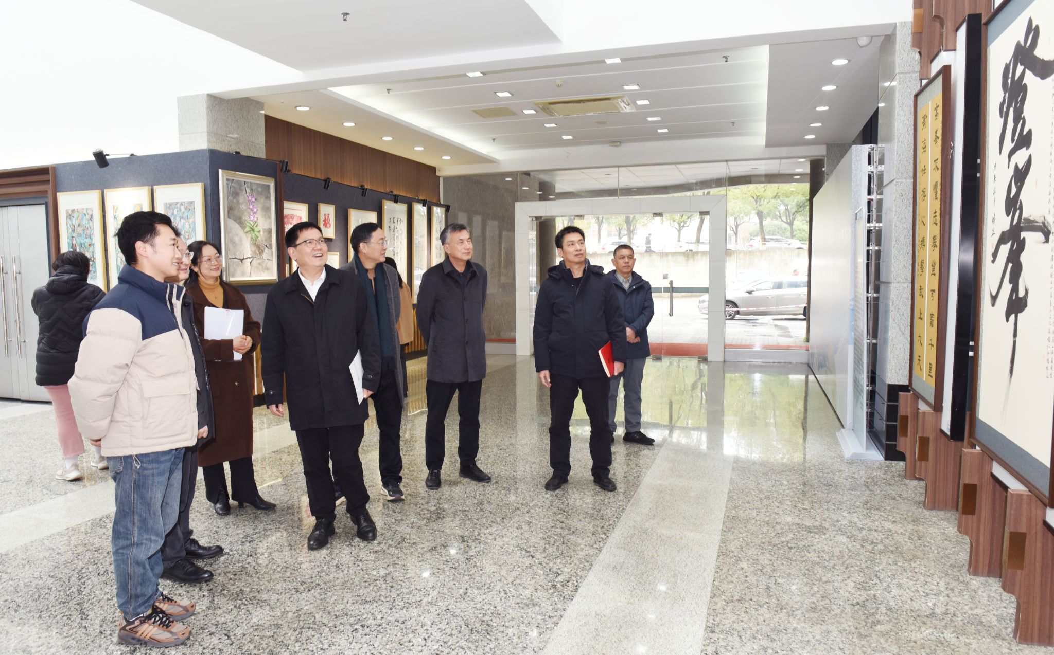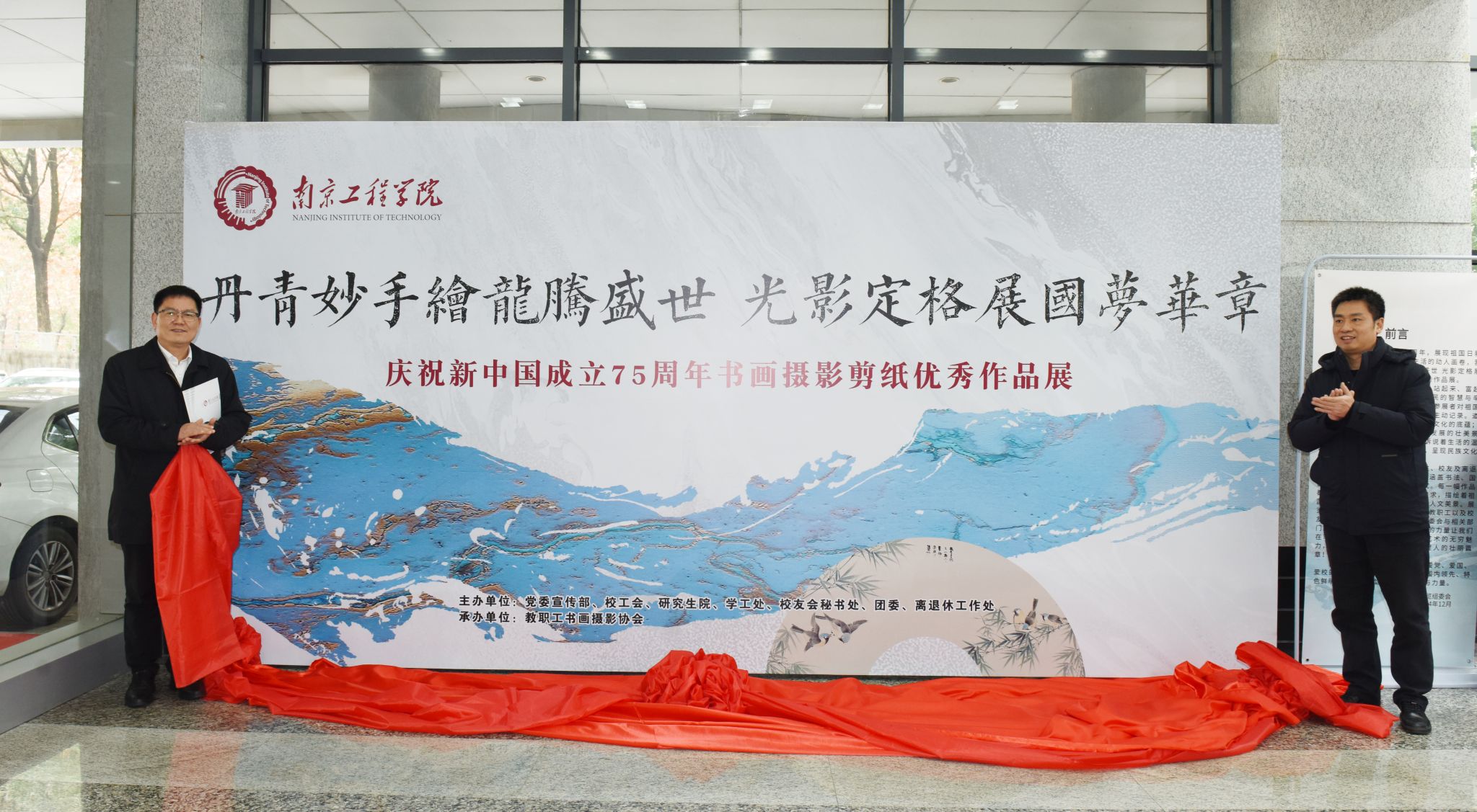 12月11日下午,“丹青妙手绘龙腾盛世 光影定格展国梦华章”庆祝新中国成立75周年书画摄影剪纸优秀作品展在教工之家——教职工书画摄影展厅开幕。党委副书记濮励杰,党委常委、宣传部部长陈建华,相关部门负责人、参展作者、教职工书画摄影协会会员、各分工会主席与师生代表等参加开幕式。