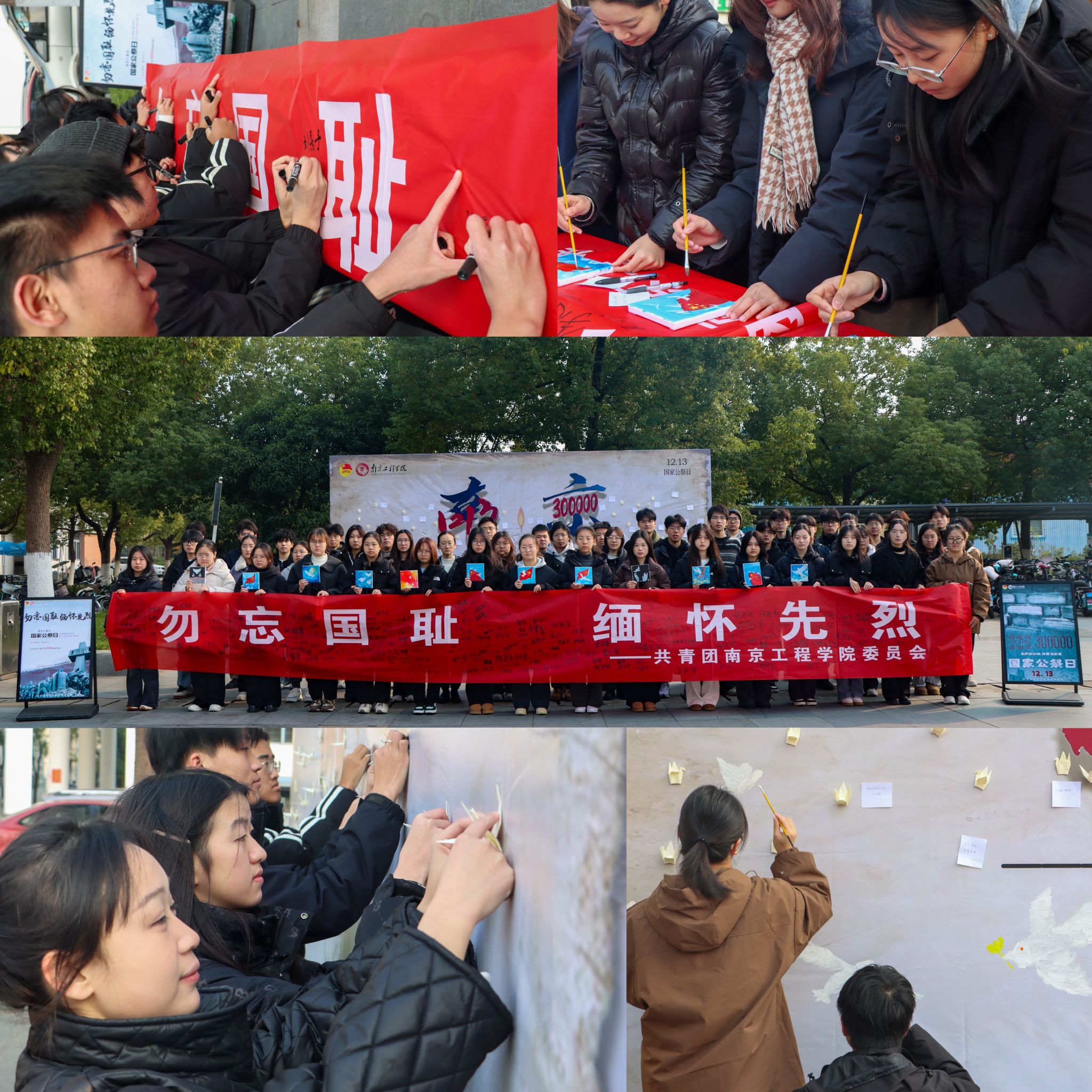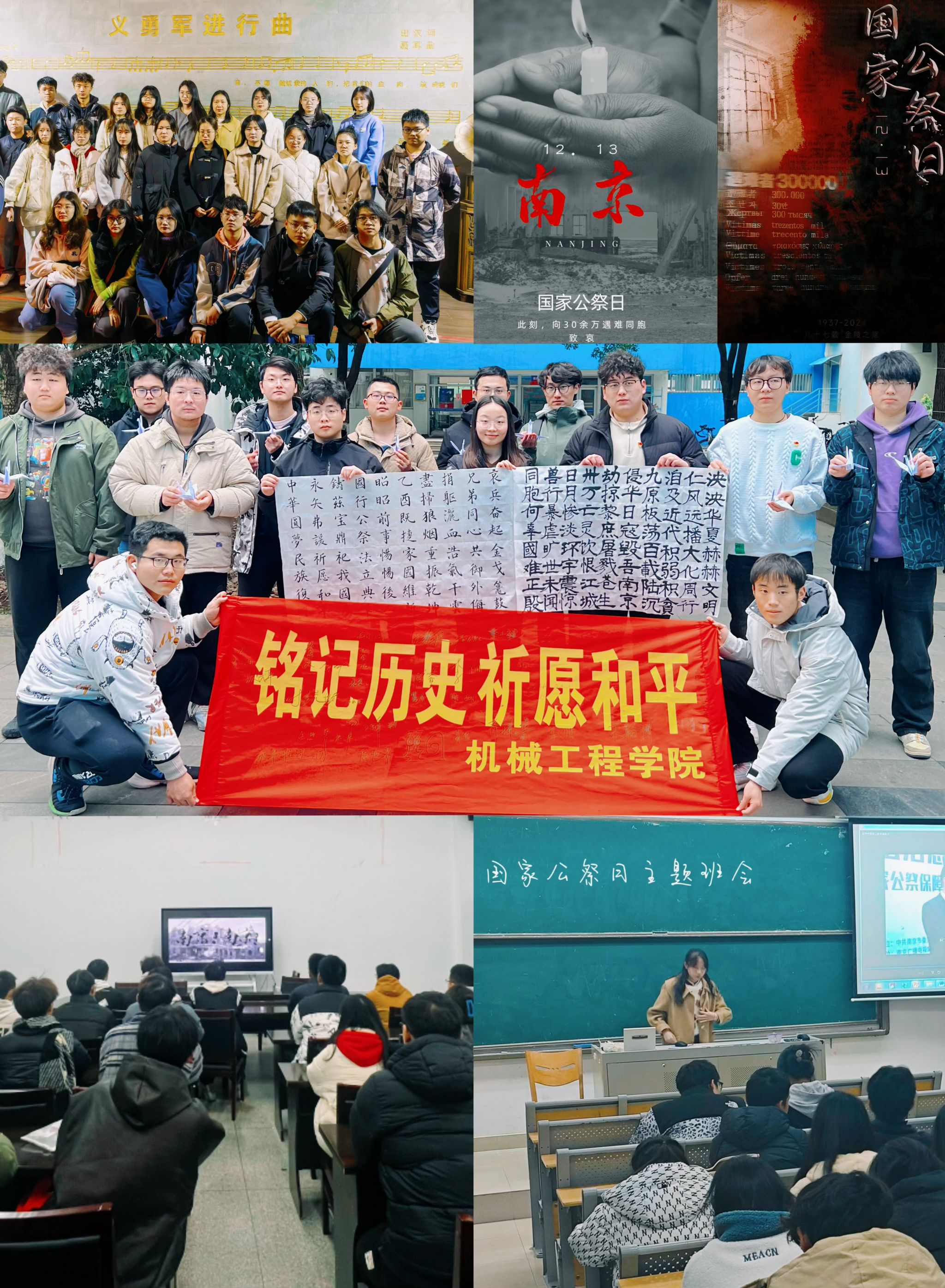 此外,学校通过官方微信发布主题推送,号召全体南工程人为遇难同胞哀悼。各学院也相继开展主题班会、参观南京民间抗日战争博物馆、公益海报设计、红色观影等活动,为广大青年学子上了一堂生动的爱国主义课,起到了良好的教育效果。