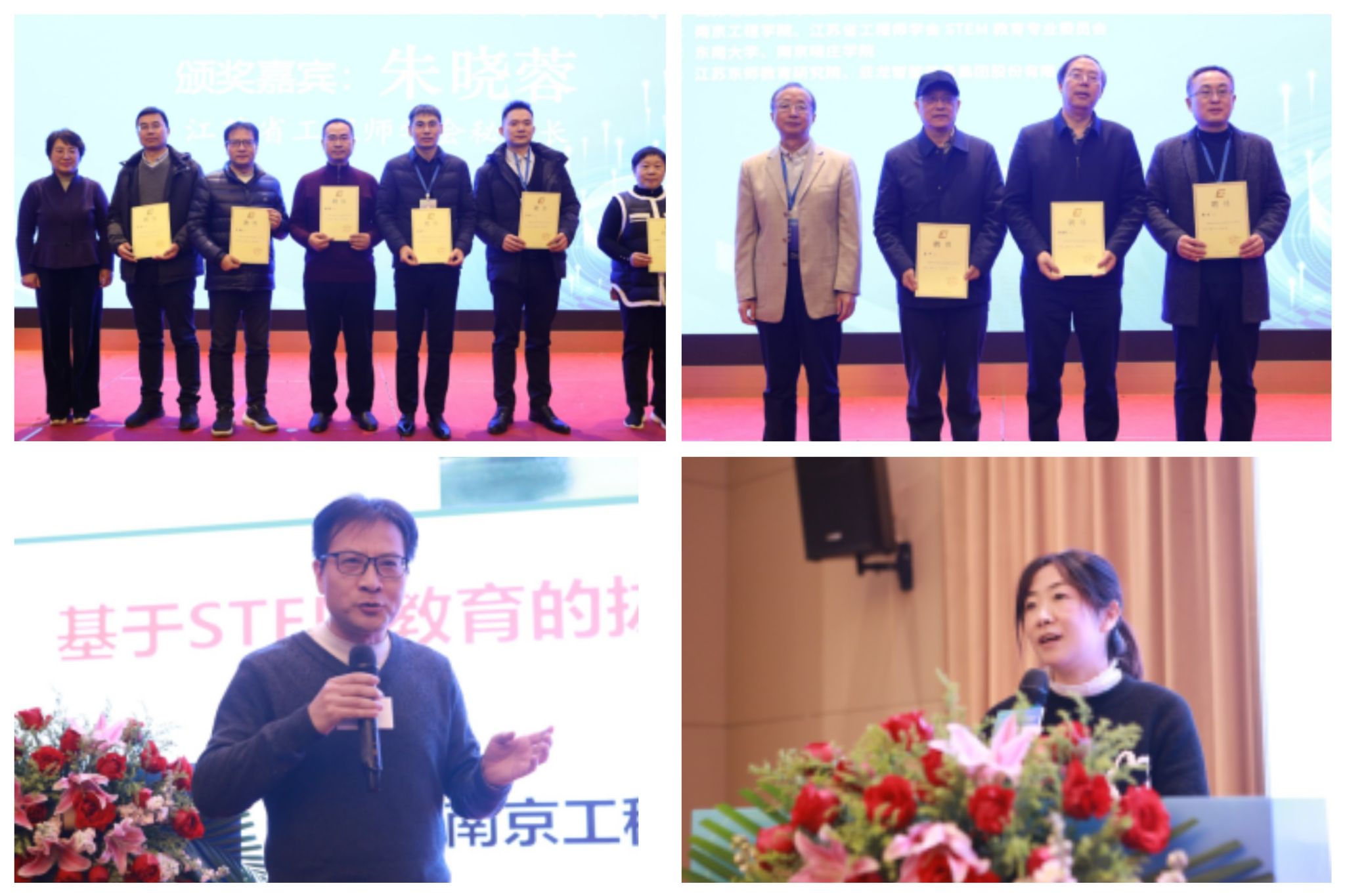 会议期间,28位专家教授、企业家、一线实践探索者聚焦STEM教育与工程教育人才培养改革创新,作学术交流报告。参会各高校还通过展板展示了在工程教育人才培养过程中的探索与实践成果;各企业展示了在基础教育、职业教育和高等教育中的教育训练实践设备、仿真软件、教材和各种人工智能产品等。太阳集团工程训练中心、应用技术学院、天印湖科创学院相关教师也先后分享交流,共同探讨STEM教育与工程教育人才培养方面的新思路、新方法、新举措。会议还进行了江苏省STEM教育专业委员会的改选工作,并颁发证书。
