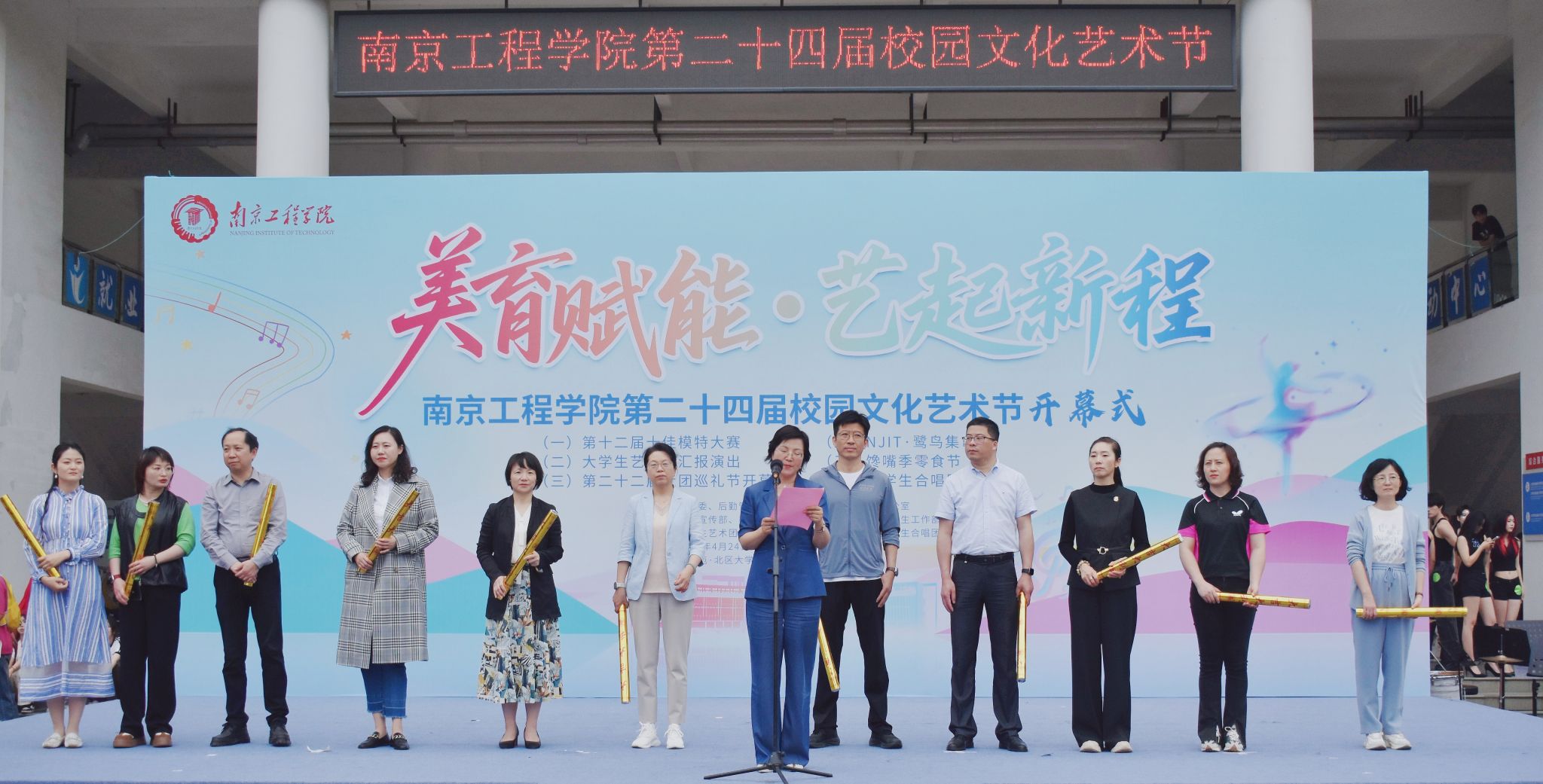 汪群在致辞中指出,校园文化艺术节是学校加强美育工作、落实“一流学生培养工程”的重要载体,也是展示学生综合素质的广阔舞台。她希望全体师生以文化艺术节为契机,传承中华优秀传统文化,弘扬创新精神,积极探索美育新路径,赋能美育高质量发展,共同谱写属于南工程人的青春华章。