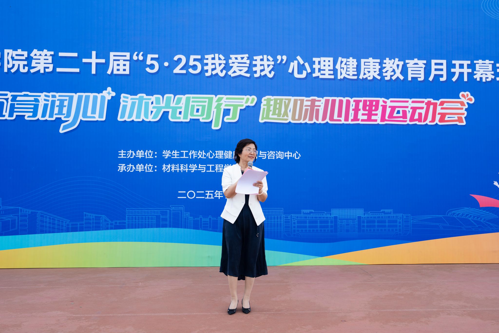 汪群在致辞中指出,学校历来重视大学生心理健康教育工作,多措并举提升学生的身心素质。她希望同学们做自己心灵的“守护者”,学会倾听内心的声音,用科学方法调适压力,让运动、阅读、艺术成为滋养心灵的养分;做同窗成长的“暖心人”,用善意传递温暖,用同理心搭建桥梁,让“互帮互助”成为南工程最动人的风景;做时代新风的“践行者”,将个人成长融入国家发展,以强健的心理素质应对挑战,在奋斗中绽放青春光芒。