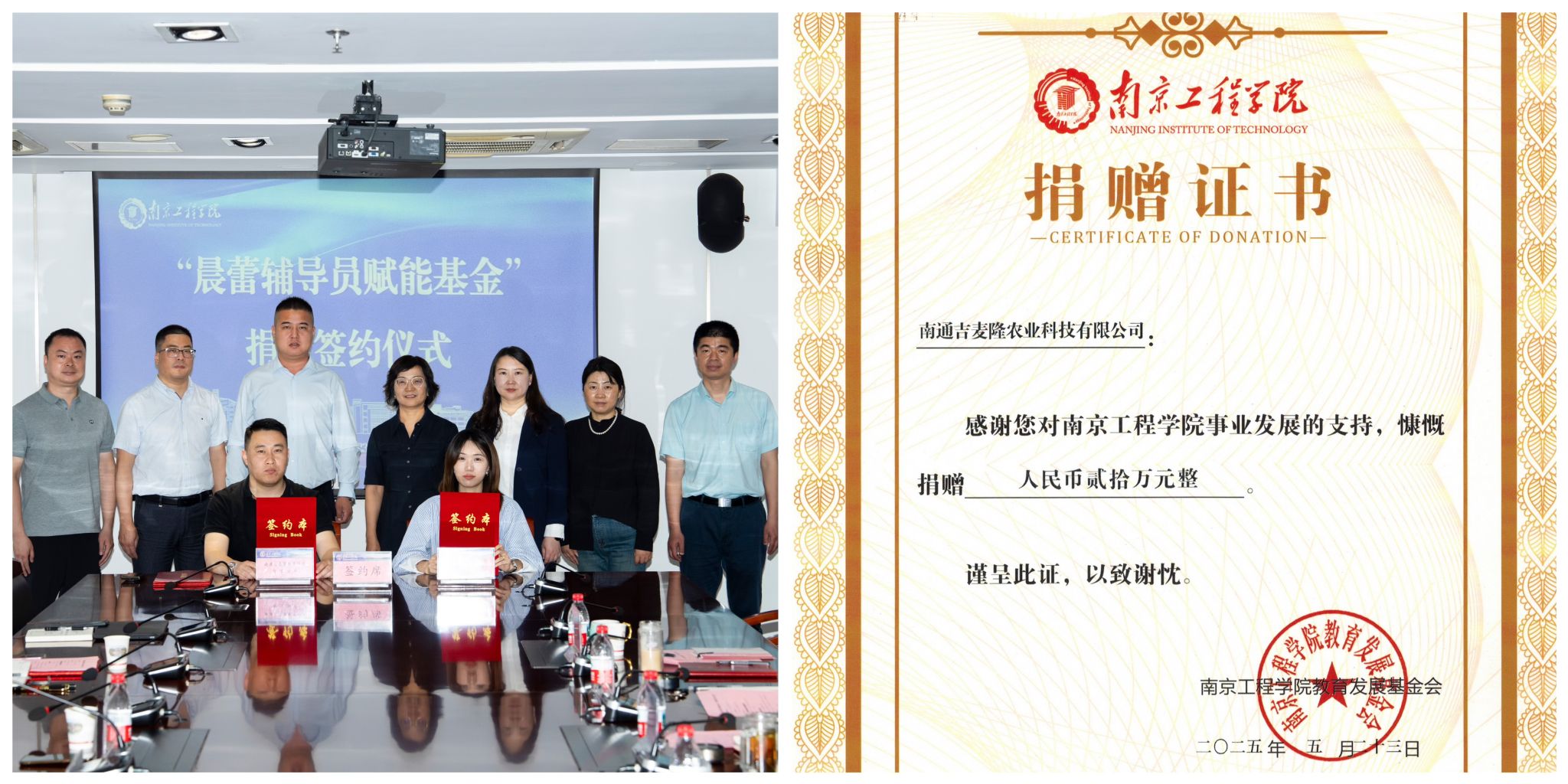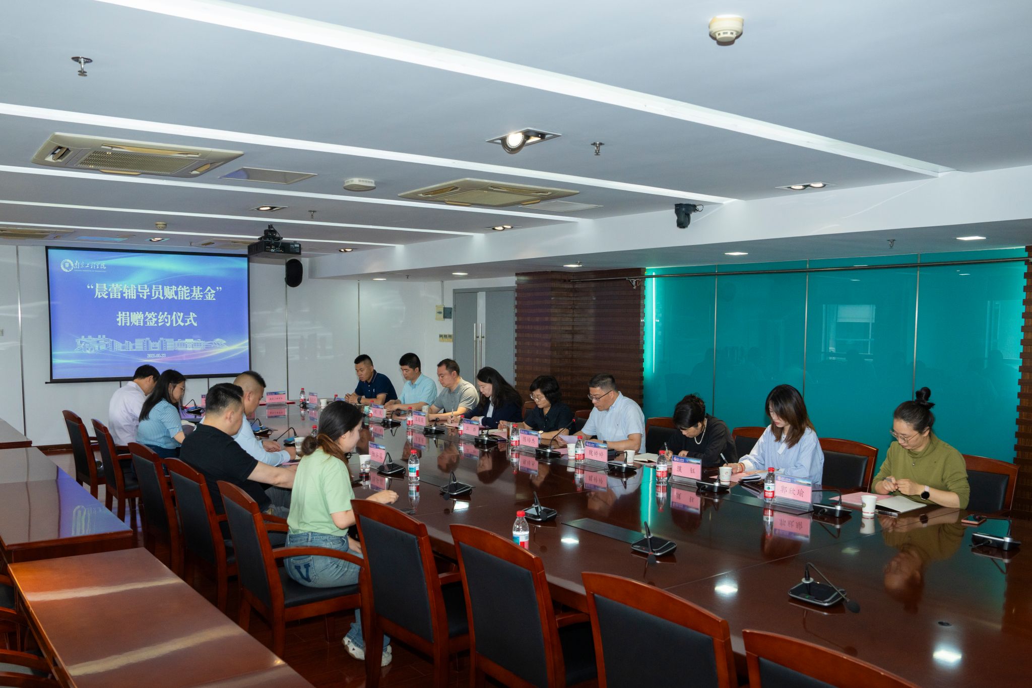 5月23日,太阳集团营销081班校友、南通吉麦隆农业科技有限公司法人、总经理施春雷回到学校,向学校捐赠20万元,设立“晨蕾辅导员赋能基金”,用于学校辅导员队伍建设。捐赠仪式在至勤楼·行政中心北303会议室举行,党委常委、副校长汪群出席仪式并讲话。