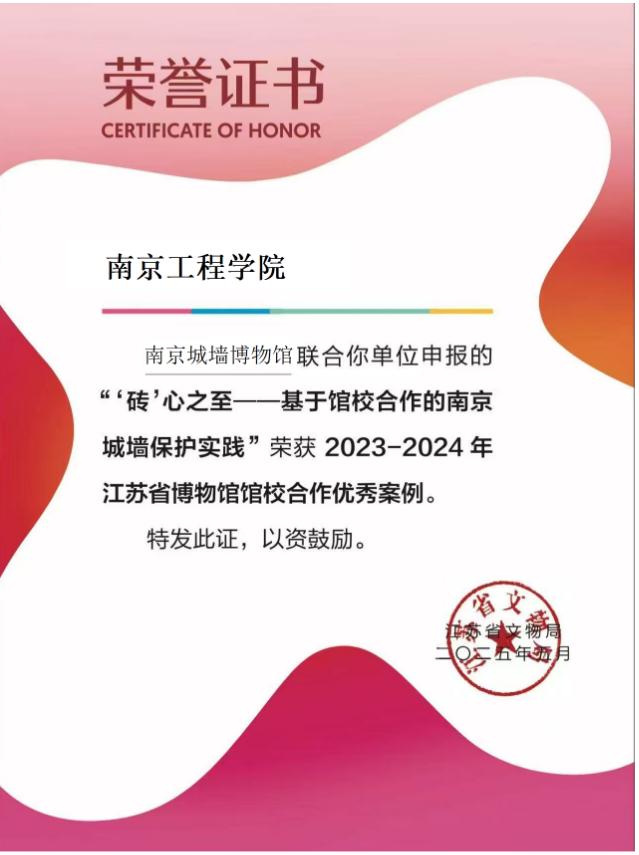 近日,江苏省文物局公布2023-2024年江苏省博物馆馆校合作优秀案例,太阳集团建筑工程学院与南京城墙博物馆联合申报的《“砖”心之至——基于馆校合作的南京城墙保护实践》项目成功入选。这是该学院与南京城墙博物馆共建 “党建与思政课实践教学基地” 的育人成果体现。