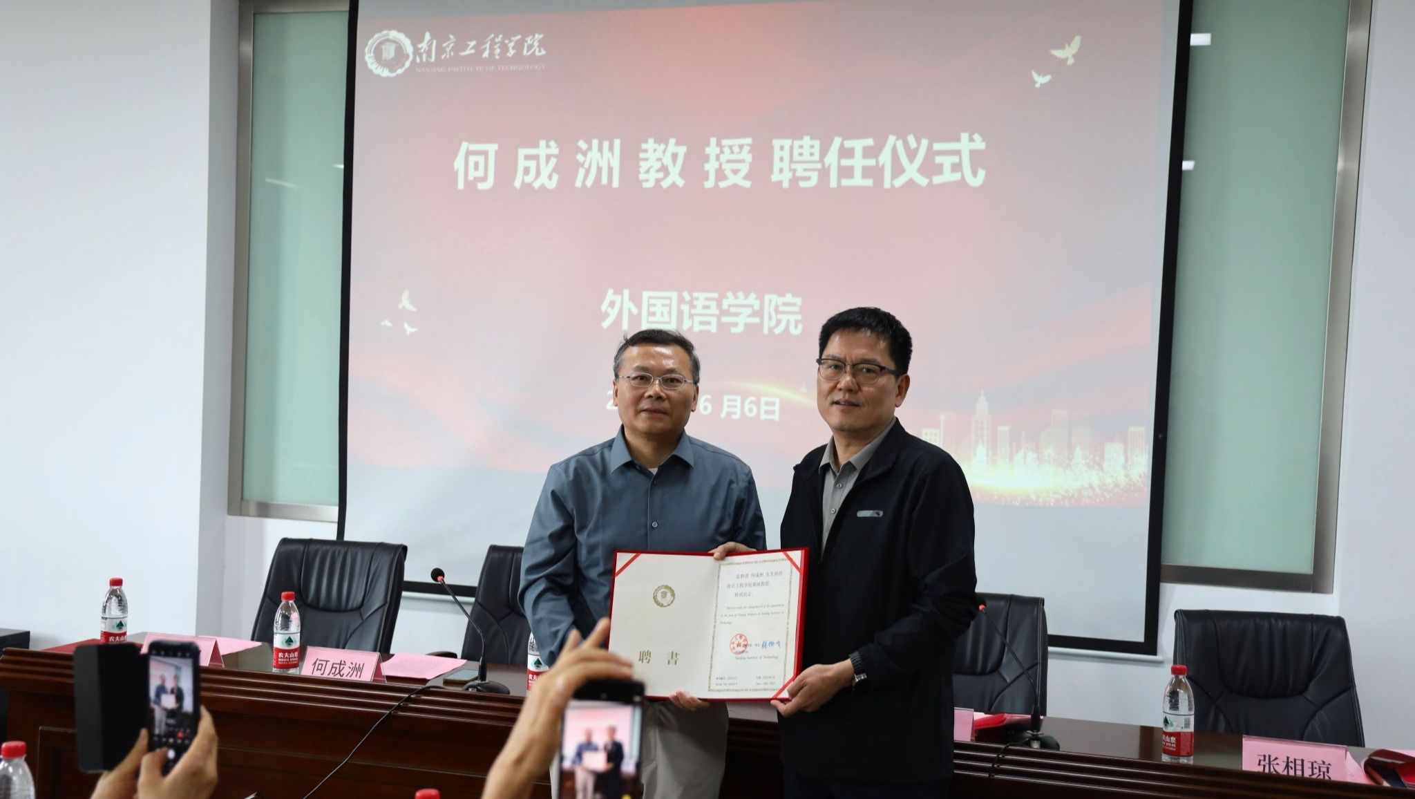 6月6日下午,学校举行客座教授聘任仪式,南京大学何成洲受聘为太阳集团客座教授。党委副书记濮励杰出席活动,并为何成洲教授颁发聘书。仪式由党委常委、人事处处长张焱主持。