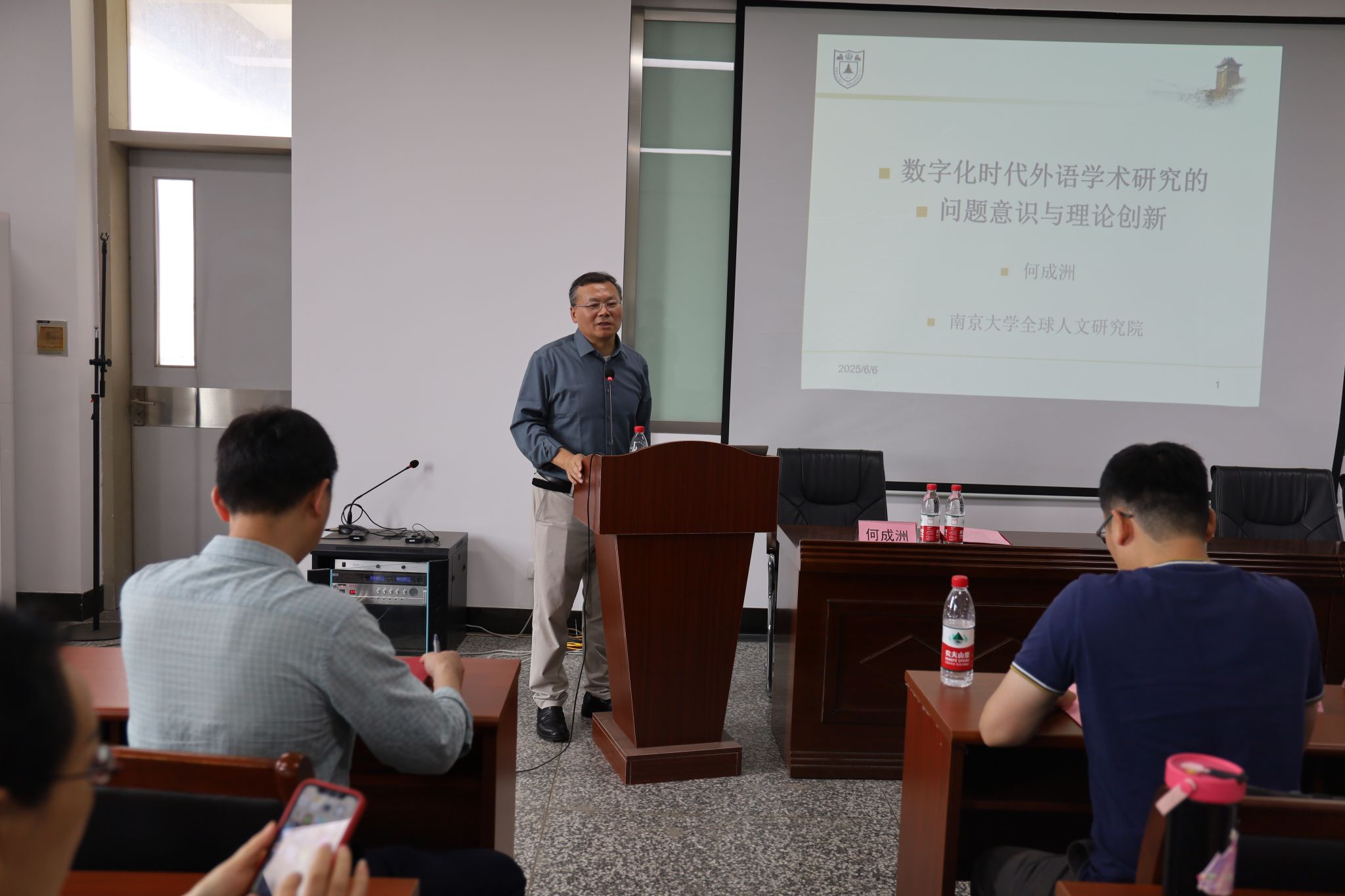 聘任仪式结束后,何成洲为与会师生带来题为《数字化时代外语研究的问题意识与理论创新》的学术讲座,并与青年教师展开深入交流,鼓励大家将跨学科理论体系嵌入前沿研究议题,开拓具有突破性的学术研究新范式。