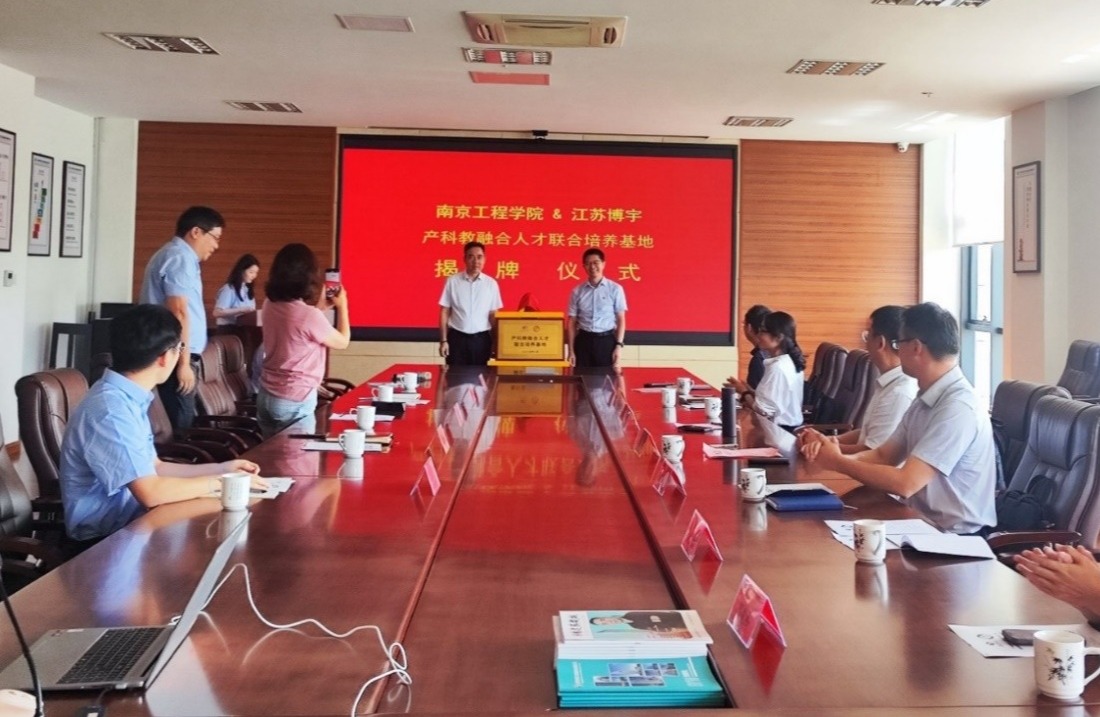 8月26日,15vip太阳集团官网与江苏博宇建筑工程设备科技有限公司(以下简称“江苏博宇”)“产科教融合人才联合培养基地”揭牌仪式在无锡举行。党委常委、副校长朱松青,江苏博宇董事长钦燕芬、总经理高智鹏等出席活动。