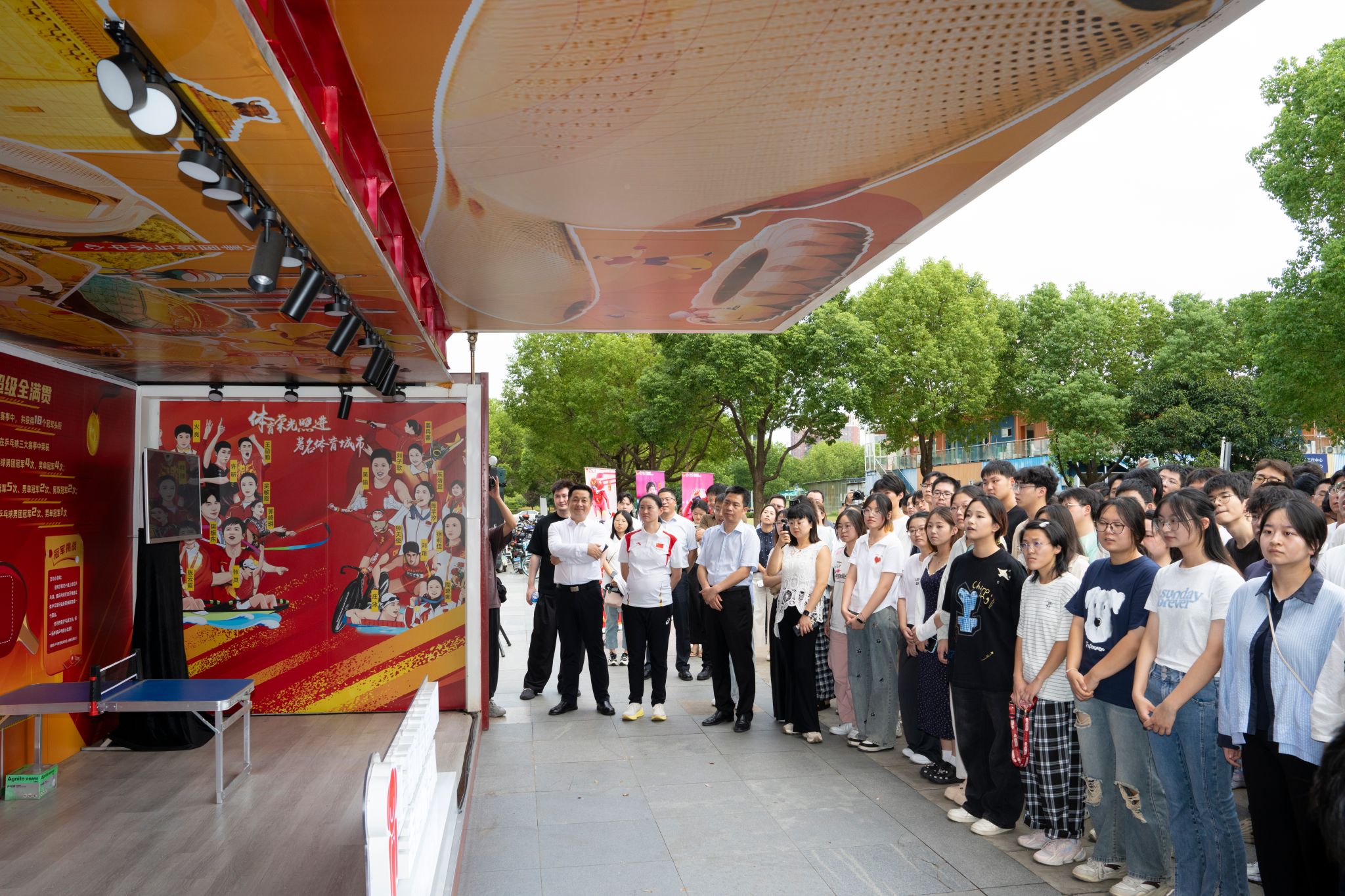 陈建华代表学校向宣讲团一行的到来表示欢迎,并指出,此次活动是学校“五心”育人行动的重要载体,此次展出的“红色立方体”是长三角体育文化宣传的首次创新,也是区域协同传播体育精神的探索。希望同学们从中汲取成长力量,锤炼意志品格,彰显拼搏精神,以实际行动为学校办学110周年暨合并组建25周年献礼。