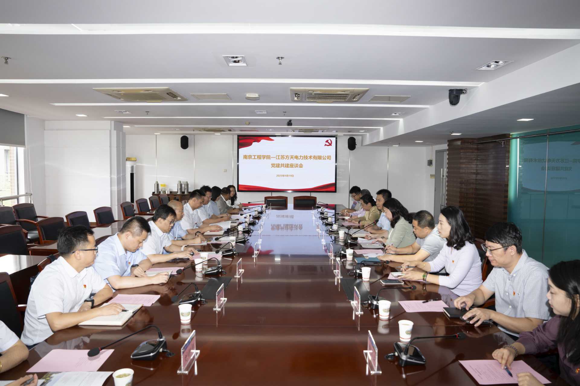 在基层党组织共建座谈会上,陈建华对江苏方天电力技术有限公司的来访表示热烈欢迎,并向来宾介绍了学校的办学历史、发展现状、办学特色等,重点分享了学校近年来在党建方面的推进举措及工作实效。祝和明对学校的热情接待表示感谢,他表示,方天公司与学校长期以来始终保持良好合作关系,期待双方在党的建设、人才招聘及培养、科技创新等领域持续深化合作、互利共赢,为区域经济发展做出新的贡献。与会双方各党支部围绕支部建设情况,就持续深化校企合作、人才培养及毕业生推荐等方面开展深入交流。