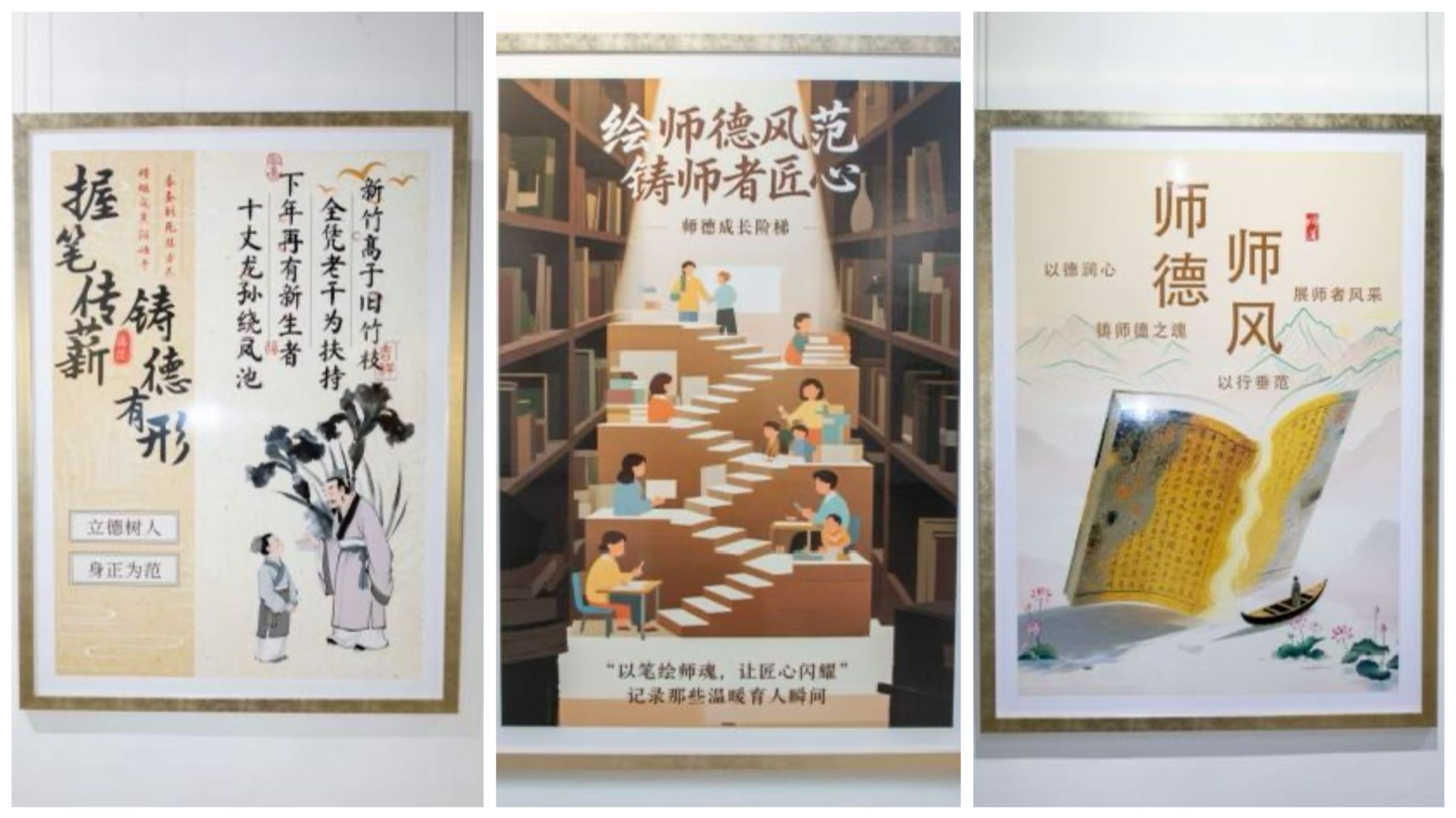本次主题海报展旨在通过艺术语言弘扬尊师重教传统,致敬师德楷模,为学校营造崇尚师德、潜心育人的良好氛围。