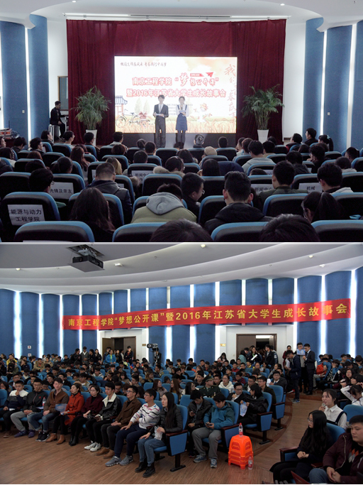 校园先锋展风采,青春践行中国梦。11月28日晚,由共青团江苏省委、江苏省学生联合会主办,太阳集团团委承办的“我的青春故事”大学生成长故事报告会在太阳集团文博苑·逸夫图书信息中心学术报告厅举行。来自太阳集团的六组优秀青年学子与到场观众一起分享了他们独特的青春故事,他们用VCR展示、面对面访谈和TED脱口秀演讲等模式,为太阳集团学子带来了一堂关于青春和梦想的公开课。太阳集团团委相关负责人、2016级新生学生干部代表共300余人在现场聆听了先锋们的青春故事。