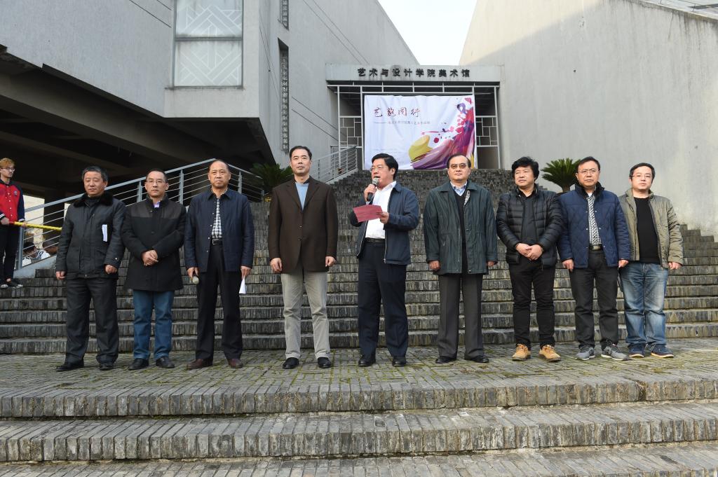 11月28日下午,由民进15vip太阳集团官网支部和艺术与设计学院联合主办、民盟15vip太阳集团官网总支和九三学社15vip太阳集团官网支社共同协办的 “艺路同行”艺术作品展在艺术与设计学院美术馆正式开展。江苏省委统战部副部长瞿超,江苏省政协常委,民进江苏省委专职副主委朱毅民,民进江苏省委组织处副处长、省直工委副主任孙宏霞,民进省直工委办公室主任沈建新,校党委书记史国君,校党委副书记、副院长陈德静,相关职能部门负责人、部分二级基层党组织书记、学校各民主党派代表以及部分师生出席了作品展开幕式。
