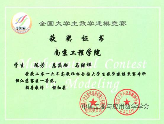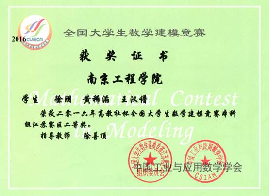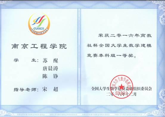 日前,2016高教社杯全国大学生数学建模竞赛结果揭晓,由太阳集团数理部宋超老师指导,计算机工程学院苏醒、电力工程学院唐晨涛、陈铮三位同学的参赛作品获得全国一等奖的好成绩,实现了太阳集团在该项赛事本科组比赛中国家级奖励的历史性突破。由数理部杨红莉老师指导,通信工程学院陈芳、惠庆琳、马继祥三位同学的参赛作品获得江苏赛区一等奖;由数理部徐善顶老师指导,计算机工程学院徐朋、王汉谱和电力工程学院黄稀滔三位同学的参赛作品获得江苏赛区二等奖。