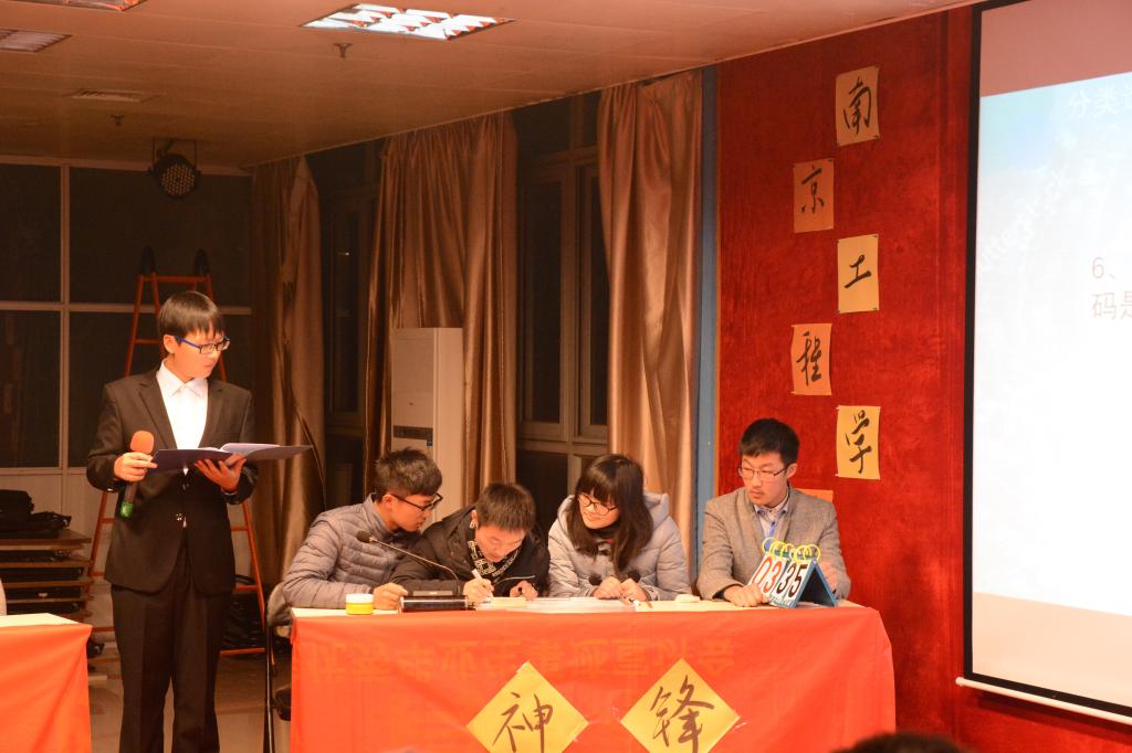 此次竞赛形式新颖,初赛就吸引了1200余名学生的积极参与,通过上机考试,最终12名同学进入决赛。决赛采用随机抽签分组的形式,12名同学组成四支代表队。队员们实力相当,表现出色,难分伯仲,经过公共必答题、分类选择题、视频题、线索题和扣人心悬的风险自选题等多个环节的比拼,来自通信工程学院的卢会会、缪啸宇和计算机工程学院的平松涛组成的“绝代风华”队荣获一等奖;来自人文与社科科学学院的高靓、材料工程学院的李恺阳和建筑工程学院的贾子琛组成的“薄雾”队荣获二等奖;来自计算机工程学院的储岁钱、建筑工程学院的顾云凡和自动化学院的王海滨组成的“神锋”队荣获三等奖;来自电力工程学院的杜九江、王涛和人文与社会科学学院的张帆组成的“单身贵族”队获得优胜奖。材料工程学院、电力工程学院和通信工程学院获得本届竞赛的优秀组织奖。