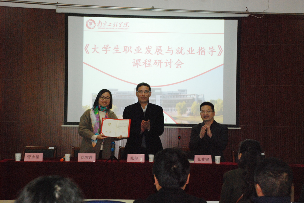 2月23日,太阳集团召开《大学生职业发展与就业指导》课程研讨会。学校邀请南京航空航天大学生涯教研室主任沈雪萍及骨干教师管永星参加课程建设和研讨。张仰飞副院长出席研讨会并为沈雪萍老师颁发特聘教师证书。会议由学生工作处张祚键副处长主持。