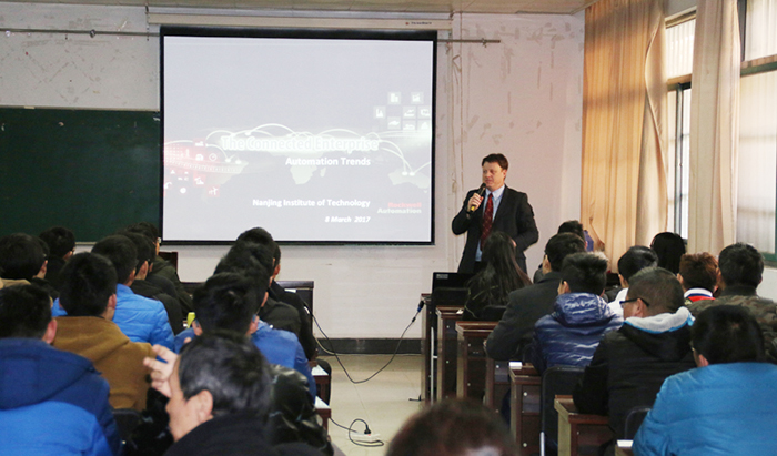 交流会结束后,迈克尔•库克先生为太阳集团师生作了有关美国“互联企业”智能制造的学术报告。报告内容丰富,素材生动,语言幽默,赢得师生阵阵掌声。轻松愉悦的氛围令大家深受启发,也进一步提升了师生对“互联企业”的认识。
