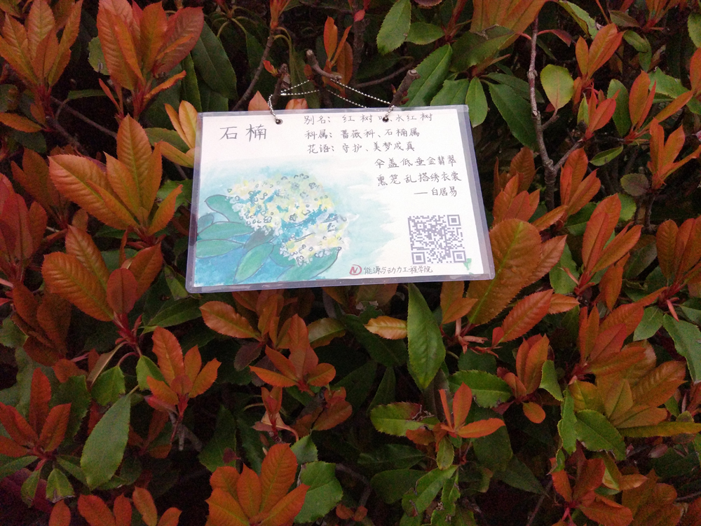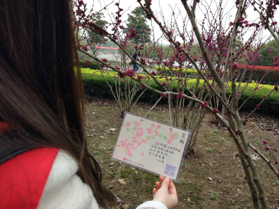 “快去看啊,学校好些花儿有了二维码,轻轻一扫,指尖上的花卉信息触手可得……”近日,在通往学海湾以及图书馆的主干道两旁,很多树木挂上了塑封的标牌,所挂标识牌除了画有植物图文信息外,并印上了醒目的二维码,引得众多师生围观扫一扫。
