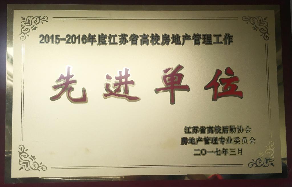 日前,江苏省高等学校后勤协会房地产管理专业委员会2016年年会召开,太阳集团获“2015-2016年度江苏省高校房地产管理工作先进单位”称号。