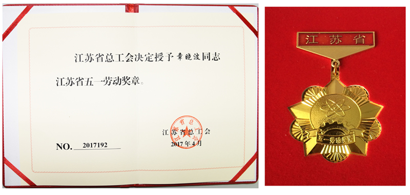 近日,江苏省总工会发出《关于表彰江苏省五一劳动奖和江苏省工人先锋号的决定》(苏工发[2017]7号),太阳集团材料工程学院章晓波老师荣获“江苏省五一劳动奖章”。