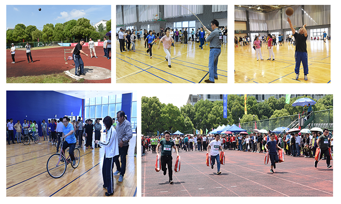 赛场上不仅看到同学们拼搏的身影,还吸引了500多名教职工投入到比赛中,校领导刘志远、曹雪虹、杨征宇都兴致勃勃地参加了比赛。除了传统的田径项目、球类技能赛项目之外,教工队还开展了诸如负重跑、自行车慢骑、定点投篮、踢毽子、跳长绳等趣味性竞赛项目,传统项目激动人心,趣味项目欢笑连连,赛场上欢呼声与加油声此起彼伏。在趣味项目中,最引人注意的是负重接力跑,老师们需要双手各拎一袋重达20斤的大米往返接力,这对平时伏案工作的老师来说,是对速度与耐力的很大考验。人文与社会科学学院张伟老师说:“比赛重在参与,跑的是一种精气神,展现的是运动范儿,能有更多的机会和大家切磋交流就是莫大的快乐!”各部门、院系负责人也来到比赛现场,为参赛师生加油助威。