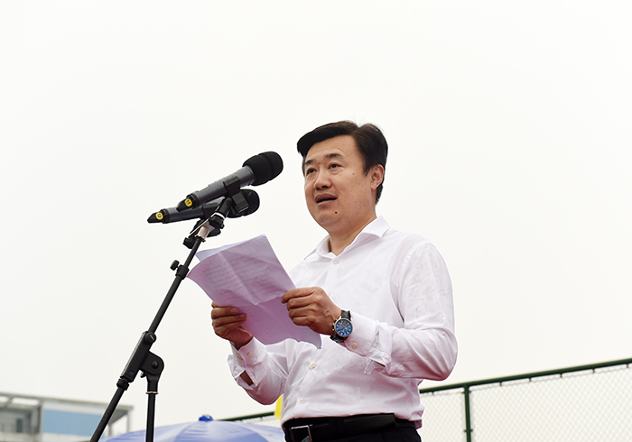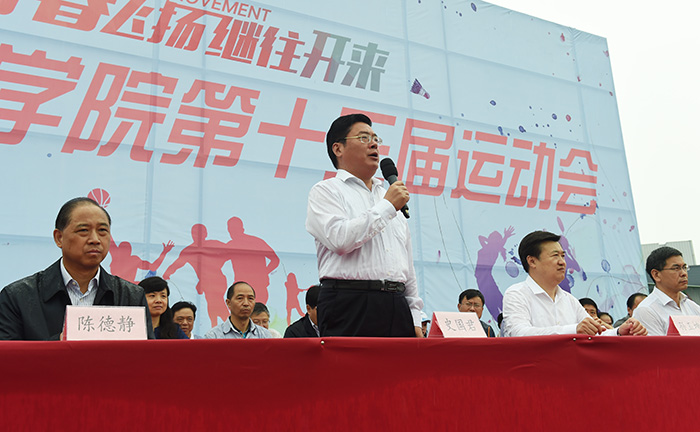 入场仪式之后,孙玉坤院长致开幕辞,他指出,一年一度的全校运动会,是学校体育工作的一次集中检阅,也是全校师生精神风貌的一次生动展示。他希望参加比赛的全体运动员充分发扬“友谊第一,比赛第二”的精神,尊重对手,尊重裁判,赛出风采,比出精彩!希望广大观众、全体工作人员积极奉献,做好服务!希望全体裁判员能恪尽职守,公正评判!努力取得竞赛水平和精神文明双丰收!更希望通过运动会这一形式,全校上下进一步形成热爱体育运动、弘扬体育精神的浓厚氛围,将体育运动中所蕴涵的不断进取、不畏艰难、敢攀高峰的拼搏精神融入到工作、学习之中,努力将学校的事业发展推向“更好、更快、更强”的新境界,努力开创学校特色鲜明的高水平应用型工程大学建设的新局面!