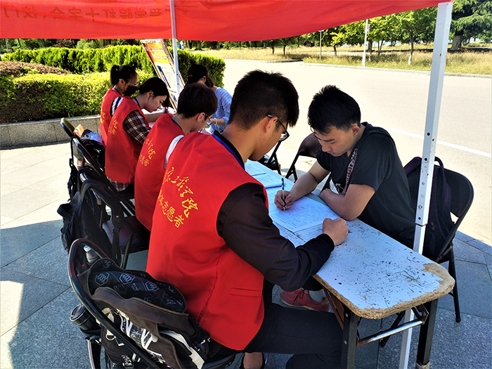 5月15、16日为前期宣传时间,校红十字会学生分会在至馨苑·综合服务楼广场和萃园二食堂门口设立无偿献血报名点,工作人员负责向有意愿献血的同学介绍献血须知、注意事项及协助同学们规范填写献血信息表格并进行汇总。现场献血当天,校红十字会学生分会的工作人员在现场设立咨询点、登记点、休息点三个工作点,并配合市红十字血液中心的医护人员做好相关工作。汗水湿透了工作人员的红马甲,却没人停下脚步休息,他们都一丝不苟地坚守在自己的岗位,保证了活动井然有序地进行。