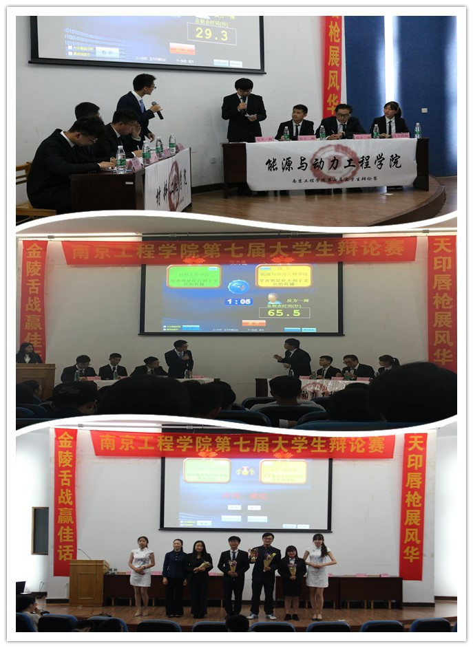 参加决赛的四强队伍都经过了初赛、复赛、半决赛的层层磨练,登顶角逐桂冠。决赛分为季殿军争夺赛和冠亚军争夺赛两个环节,在季殿军争夺赛中,正反双方围绕“学者明星化是否有利于文化的传播”展开辩论,双方辩手言辞犀利,精彩的辩论博得全场喝彩,面对观众的提问,双方辩手同样满怀激情。在冠亚军争夺赛中,双方辩手以“大学生教育应不应该以市场作为导向”为辩题,博古论今,幽默风趣,比赛现场十分精彩和激烈,观众们也为辩手们的精彩表现鼓掌喝彩。赛场上,评委们根据辩手们在场上的表现、辩论技巧、现场风度、事例论据等进行点评和投票。最终,通信工程学院夺得桂冠,人文与社会科学学院荣获亚军,材料工程学院荣获季军。能源与动力学院荣获“优秀组织奖”。