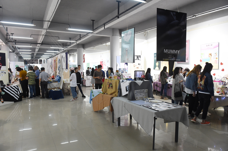 开幕式后,师生移步美术馆,现场感受毕业设计作品中洋溢出的奇思妙想和实践能力。本次展览共展出艺术与设计学院2017届5个专业246名毕业生的优秀作品,作品各有特色,创意层出不穷。赵锦航的《伊莫兽—书籍插画及衍生产品设计》以独特的视角、细腻可感的形象、清新活泼的画风勇敢直面心理问题患者的内心世界;赵康的《破碎与重生---宁海路民国风情街规划设计》大胆打破室内外空间,从梧桐中提取形、色、意等元素,将民国风情与当代建筑理念融合;骆霄霄团队的动画《Fall in loye》从自己收养的流浪猫身上获取灵感,借丑萌的小猫形象与大家分享了一个屌丝追求女神的轻喜剧;韦巍的《负·结构——太阳能旅行包设计》则以解构主义、减少主义的理念,在结构与功能上重新定义旅行包……每一件作品都蕴含着制作的自如,贯穿着思考的过程,承载着心灵的体悟。