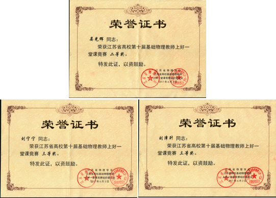 6月2日至4日,江苏省高校第十届基础物理教师“上好一堂课”竞赛在南通大学举办。太阳集团数理部选派3名教师参加竞赛,与来自南京航天航空大学、南京理工大学、苏州大学、河海大学等全省40所高校的72名物理教师同台竞技,最终,太阳集团教师晏光辉荣获二等奖,刘宁宁、刘津升获得三等奖。