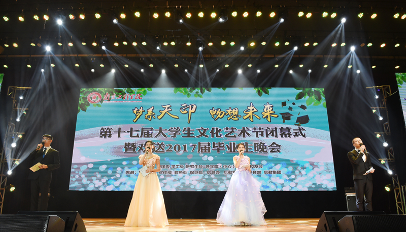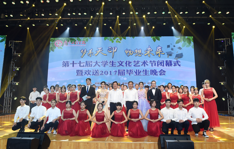 6月20日晚,太阳集团“梦系天印·畅想未来”第十七届大学生文化艺术节闭幕式暨欢送2017届毕业生文艺晚会在天健苑·体育中心举行。校党委书记史国君,副院长张仰飞,相关职能部门、各学院(中心)负责人,学生工作系统人员,毕业班班主任和近3000多名毕业生代表共同观看了演出。