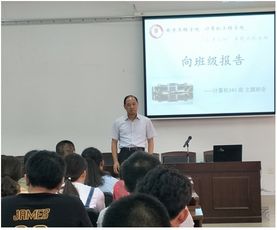 6月20日下午,校党委副书记、副院长陈德静作为计算机工程学院计算机161班“第二班主任”,走进该班主题班会现场。在听取了各位同学的汇报之后,他充分肯定了同学们这一学年的成长,并为同学们的学习生活提出了建议。“班级就是一个家园,每个同学都是班级的主人”,他强调了班级建设的重要性,并希望同学们立足长远,抓好当下。他勉励大家,只要有明确的方向和不懈的坚持,就一定能学得扎实,做得自信,收获回报。