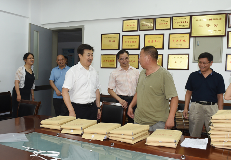 无论在教研室、会议室还是资料室,都能看到大家忙碌的身影,有些已经退居二线的老教授、老教师顶着高温赶到工作现场进行指导,有些老师工作到晚上七、八点钟才离开学校……校领导每到一处,都会亲切询问师资配备、条件保障以及目前工作的进展情况,孙玉坤院长代表学校向一线老师们表达感谢和问候,赞扬他们兢兢业业、乐于奉献的精神,同时叮嘱大家在做好工作的同时,一定要注意防暑降温,保重身体。针对下半年即将到来的本科教学审核评估工作,孙玉坤院长希望各相关职能部门和教学单位要按照迎评工作的部署和进度要求,做实、做细、做好相关工作;要做到迎评促建工作和教育教学工作整体部署、全面推进,促进学院各项事业再上新台阶。